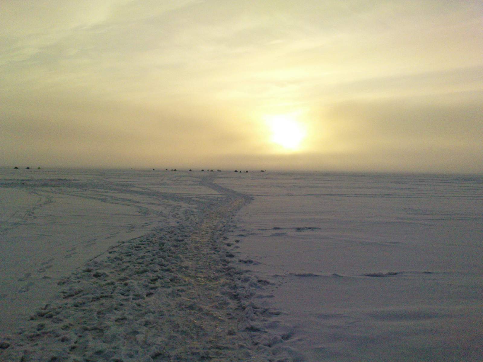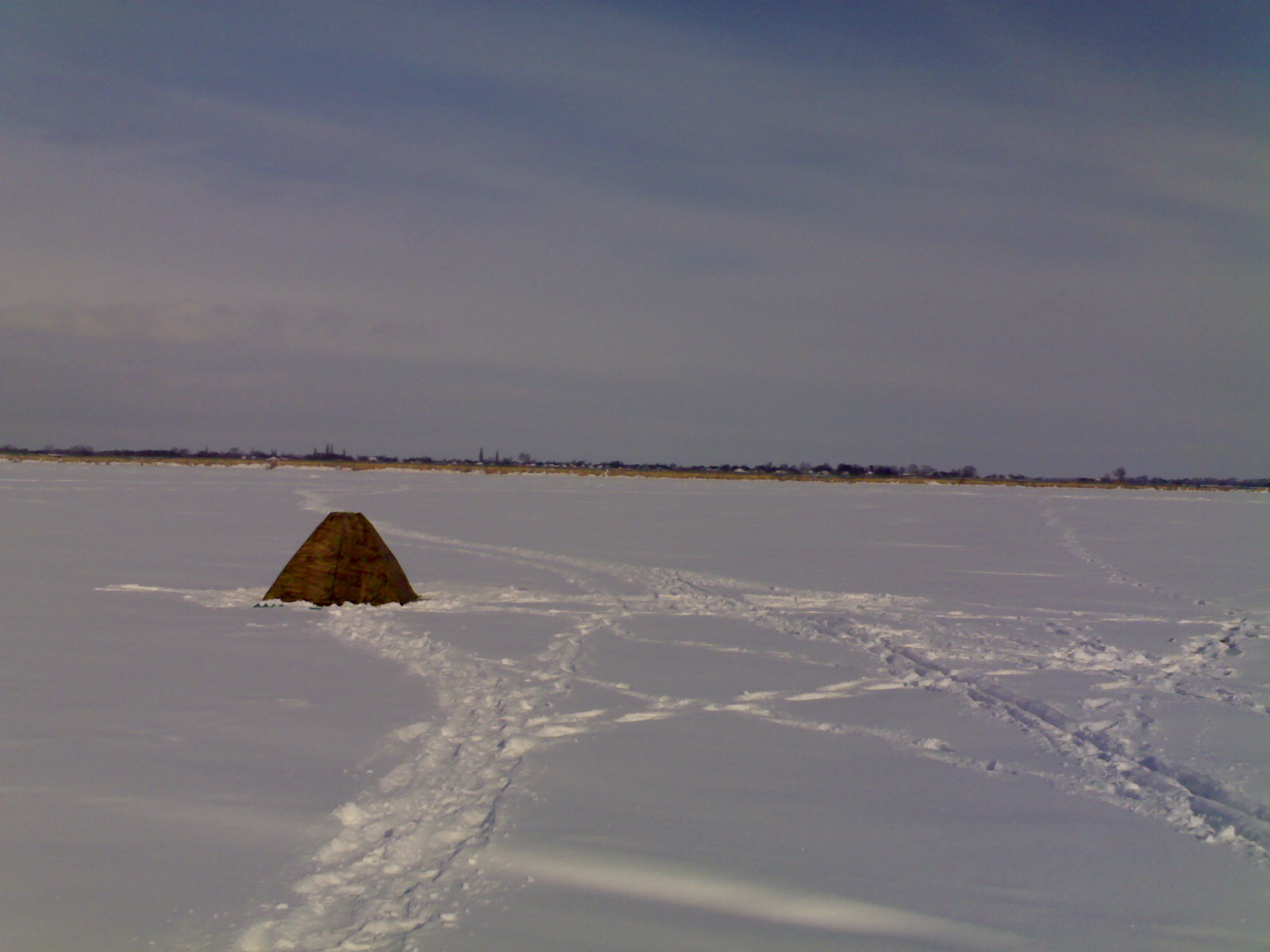 Сегодня. Пронозовка. 0,5 часа ходу от берега. Снега много-поэтому на дорогу потратили чуть больше. Нашли тот район, где ребята ловили в прошлое воскресенье. Куча рыбаков сидит чуть далее и то хорошо, хоть как не на базаре. Бурю пару лунок, опускаю грузовку в разведку. Через 5 мин - поклевка, потом еще пару и таранька чуть меньше ладони на снегу. Опускаю снова - пару поклевок и опять таранка только чуть больше ладони на снег. Можно ставить палатку. Разместился-и в бой.Клюет на легкое на нижнем крючке грузовки, опускаю мормышки рядом и цепляю хлебушек с чесночком (спасибо Олегу Короте подсказал). Вобщем потроху рыбка пошла и приятных размеров-ладонь, чуть больше, проскакивали и вовсе достойные экземпляры. Пронеслась мысль, что за целый день намашемся руками. Короче хороший клев до половины первого дня, потом периодический и очень "рваный" (как будто мелочь). Рыбка с обеда стала попадаться реже и реже, теплили надежду на вечер, но к сожалению практически зря. Перепробовали все возможные насадки и их комбинации, но жор так и не начался. Погодка днем конечно была супер - пришлось в палатке раздеваться, к вечеру стало хмуреть небо. Глубина ловли порядка 6,5-7м. Норма выловлена и отправлена в соль. Всем удачи.