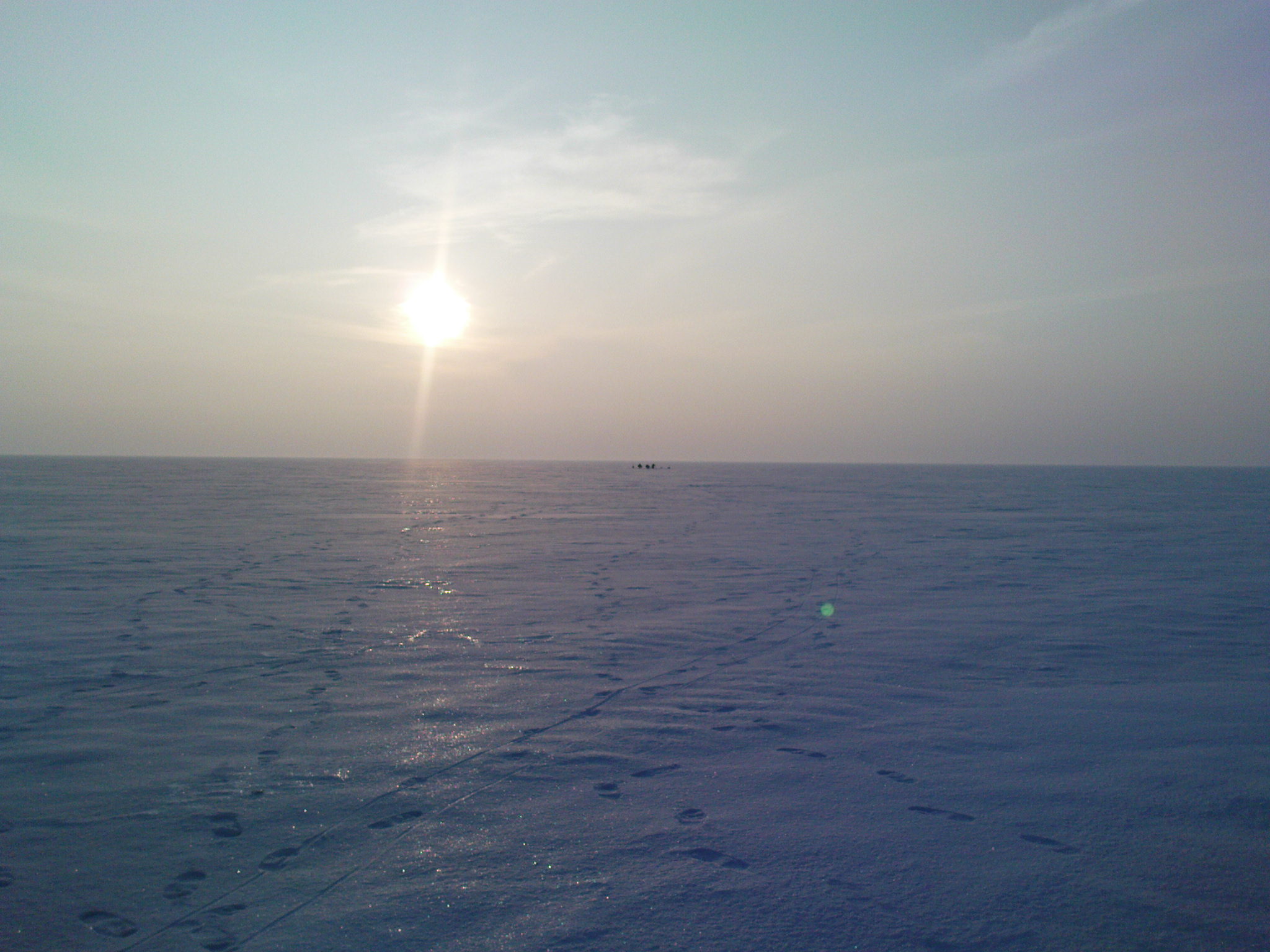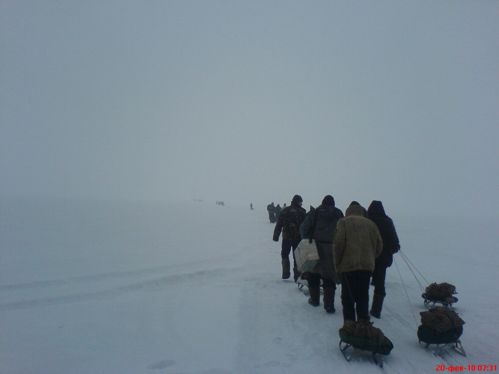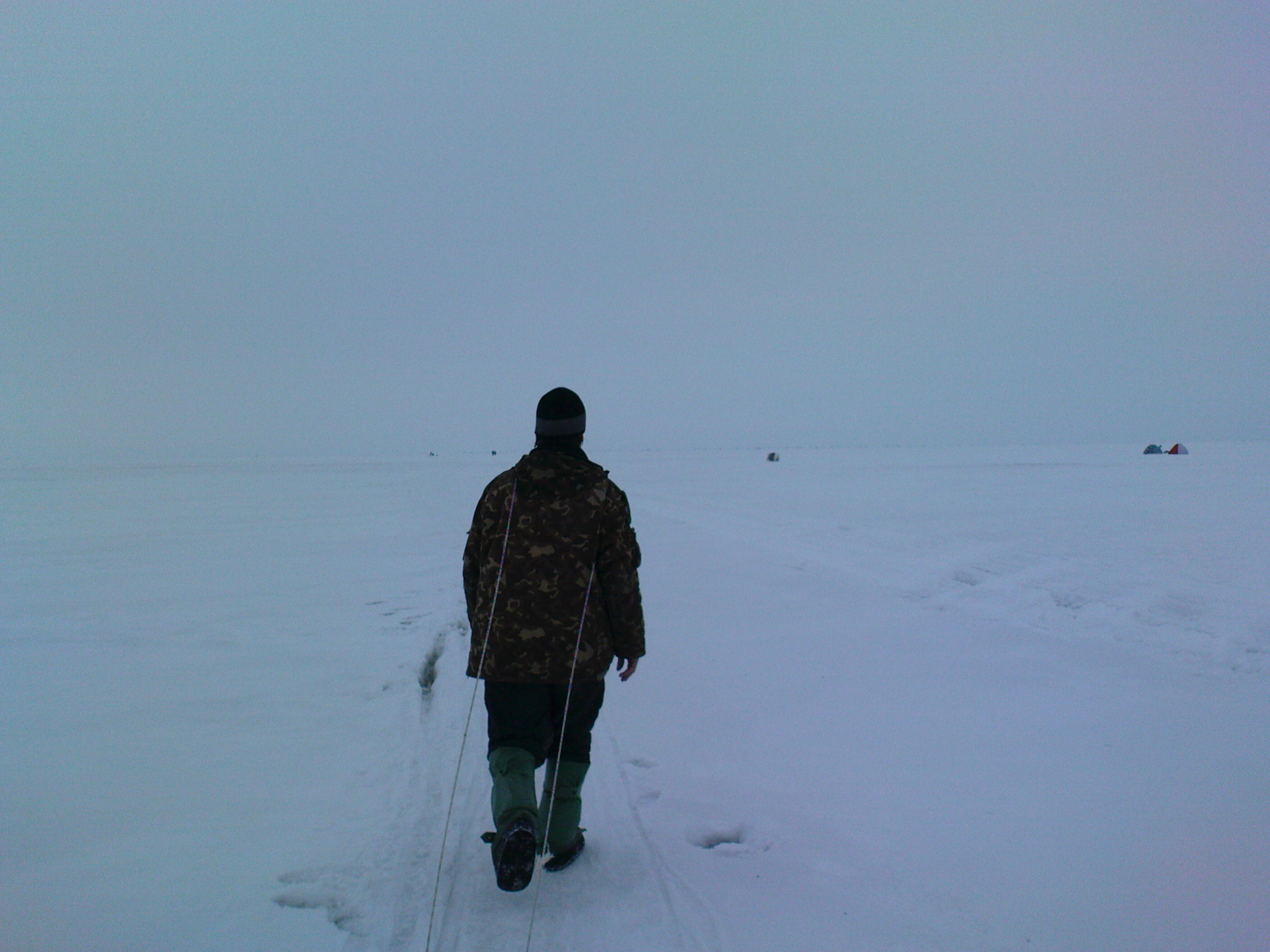 Были и мы вчера в Пронозовке. Погода конечно - и врагу не пожелаешь. В 9-00 выход в море. Идем до первой трещины - довольно легко идти, но осознавая что вечером идти обратно и по прогнозу ветер должен быть не меньше, а даже больше+сильные осадки. Решили остановиться, забурились стрельнули эхолотом - глубина 7 метров, рыбка проскакивает правда некрупная. Короче опустив одну удочку - сразу две "рванных" поклевки похожих на мелочь. Потом до 12-30 еще несколько таких же поклевок - а в результате 0. Легкий перекус, и как всегда во время него начинает клевать. Первая таранка где-то ближе к 13-00. Пошло-поехало, до 15-00 довольно стабильный клев, но как отметил korotia много безрезультатных. Потом рыбка отошла от нас метров на 20 , клев несколько утих. Ну и с 16-30 до начала шестого еще трошки поклевала. Короче когда вышли на тропу к берегу, поняли что не зря остановились в 20 минутах от берега, потому как народ шел сдалека и падал на передых прямо на снег. Уставшие, но довольные в 18-50 выдвинулись домой. По итогу рыбалки - десятка 3 (мож чуть больше) таранки, половина которой ушла под соль, а половина пожарена (ввиду размера меньше ладошки). Фото не делал, т.к. погода заставила за все забыть.