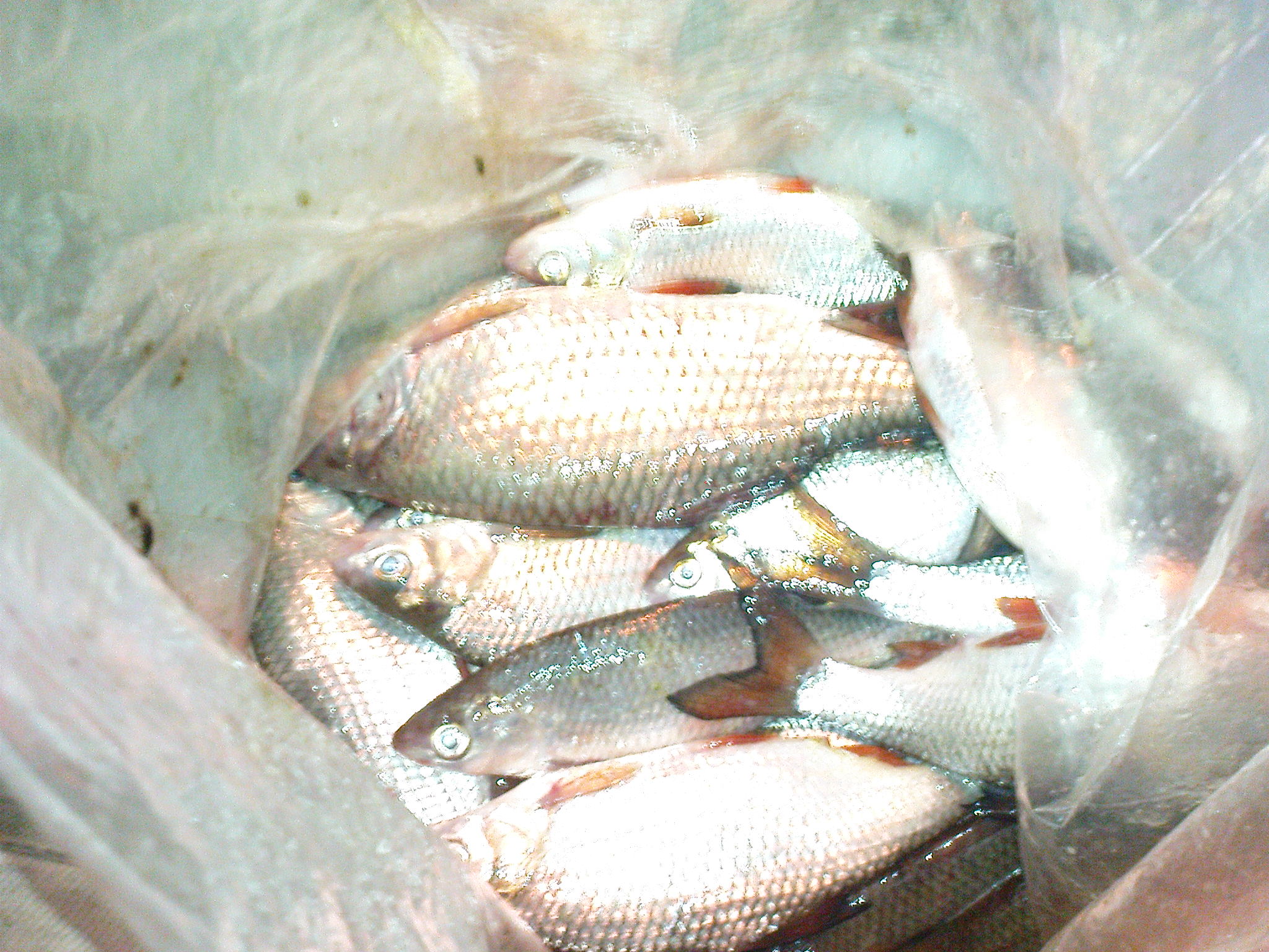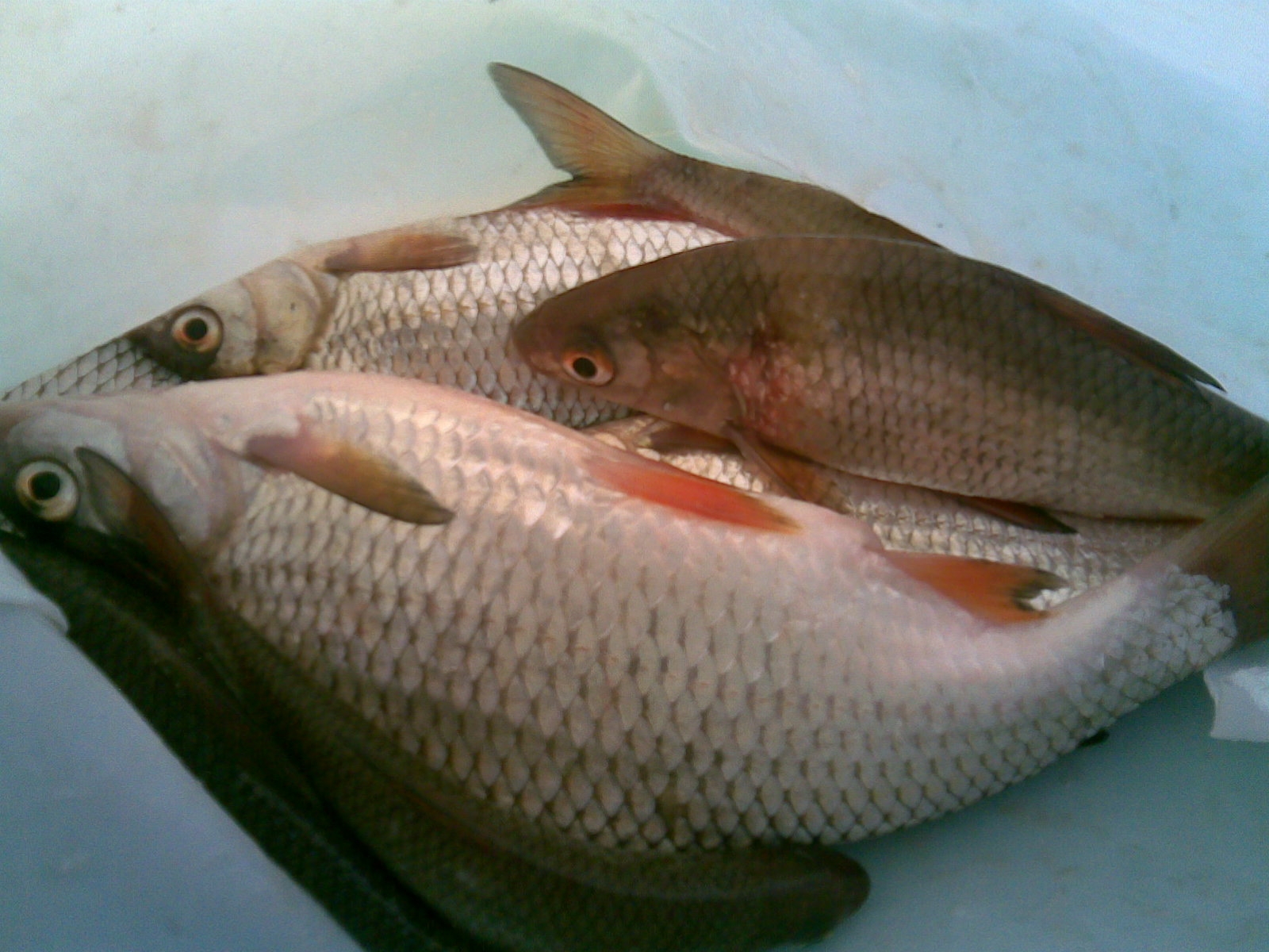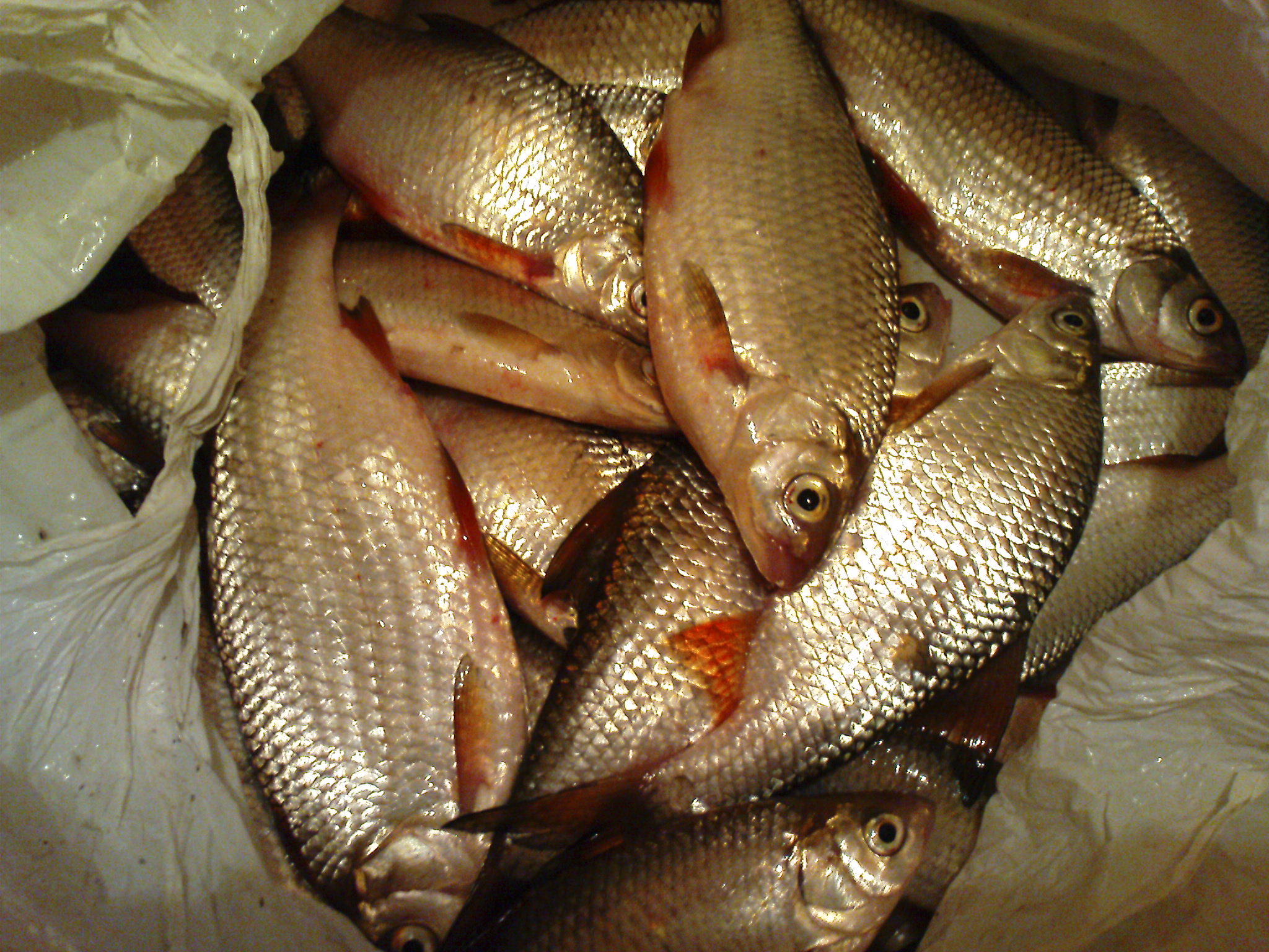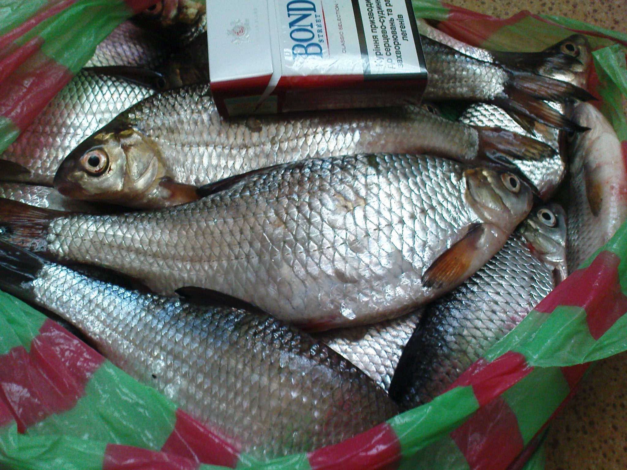 Сегодня Пронозовка. 20 минут от берега, глубина около 7 метров. Погода утром - сказка, туман лишь немножко ухудшал общее впечатление. Примерно до 11 часов - поклевок не было совсем, после 11 вроде как толкнули водицу и начала проклевывать. До 14 (примерно) стабильный неплохой клев, потом течение стало крутить поплавки по лунке, накрапывал дождик и клев тоже ухудшился. Короче до вечера еще по несколько штук выхватили и домой. Клев был в основном у всех не ахти, многие пришли на берег не довольные, да и сдавали рыбы очень мало. Сегодня было больше мелкой (до ладони) таранки, и лишь десятка 1,5 покрупнее.