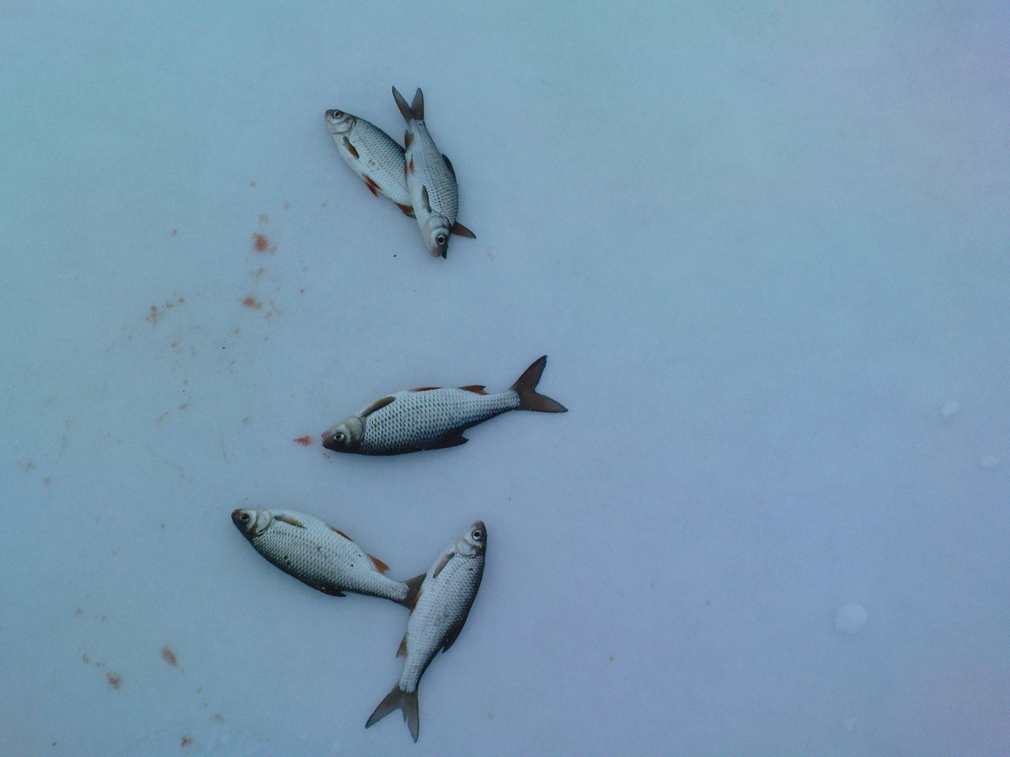 Cудя по отчетам выше,можно сказать конечными словами прекрасного анекдота от карасика "кому то все! а комуто ничего!"Я о сегодняшней рыбалке в Пронозовке.Очень много положительного,это прекрасная дорога до лунок,это неплохая погода и отличное настроение до рыбалки,в последствии стало не очень хорошим.Ездил с ребятами,которые в понед. и во вторн.ловили на этих местах.Да,нашли лунки,да начала отзываться с самого утра,нет сказала часов в 12 рыбка и как заклинило ее,не хотела брать.Видят бывалые,что стоит,есть она,но брать-извините!!Вообщем ничем не соблазнил плотву на клев,ни опарышем ни хлебом ни мотылем,последнего одевал в избытке.Так и просидели до 15.00,не увидев ничего толкового ушли в берег.Хоть и поймал кг.плотвы но рыбалкой доволен,даже при хотьбе не устал,вспоминаю прошлый выезд...