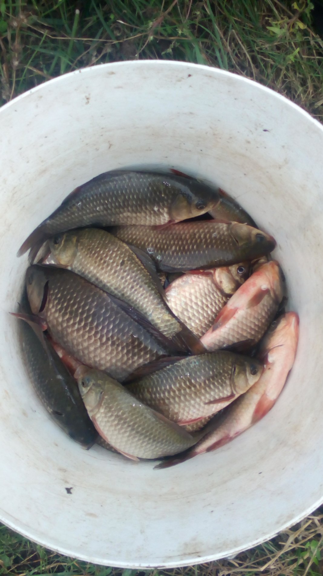 Сегодня по работе планы немного изменились и день оказывается свободным. В 9.00 созвонился с знакомым и решили проскочить на 2 оё Диковский ставок. Выехали в 10.10 на месте в 10.45. В 11.30 оснастка в воде. 5 удилищ и пружины где 1 где 2 крючка. Прикормка самодельная, наживка червь + опарыш. Карасик ловился мельче чем в прошлую поездку, иногда попадал 250-300 грм. В итоге до 17.00 поймали по 9 шт карасиков и по 8 шт красноперки для котеек. Всем спасибо за внимание и НХНЧ