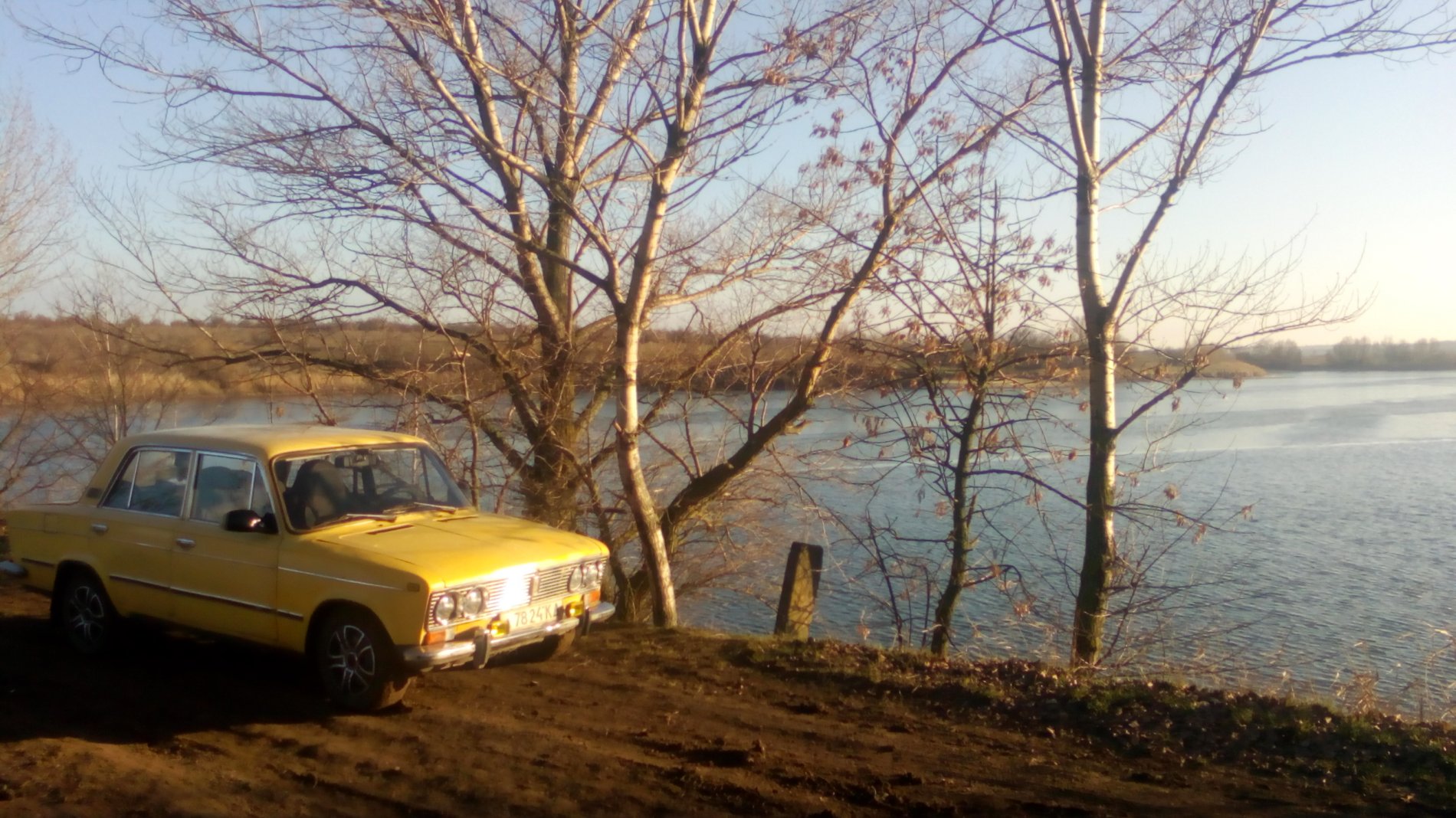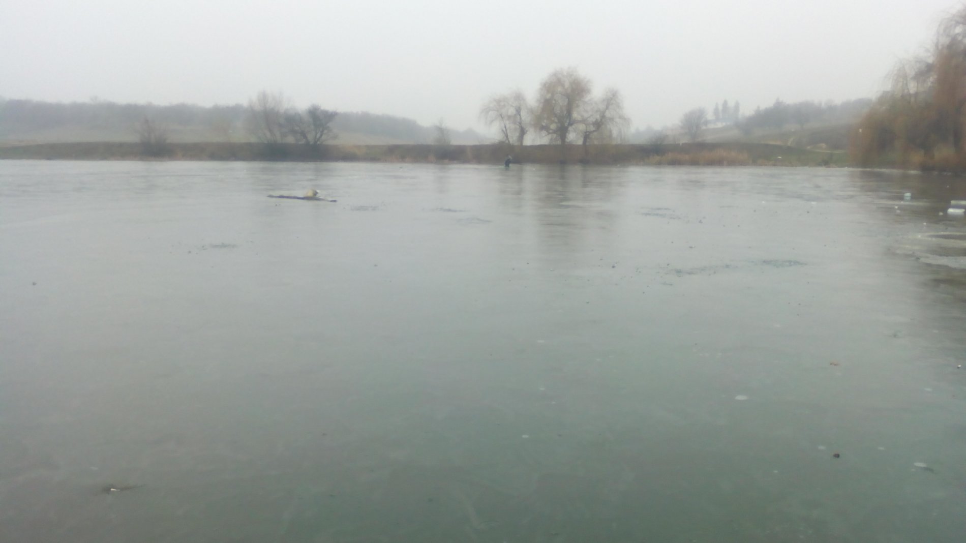 Я не стал рисковать и пробовал рыбачить вдоль длинных притопленых стволов деревьев. В общем с 13.00 до 16.00 ни одной поклёвки, у других рыбаков такая же ситуация. При ехал человек с женой и собакой на микроавтобусе, посмотреть на ставок, на летней резине. Заехать заехал а вот назад никак, да ещё и под горку с балки, хоть в одну сторону хоть в другую. Пришлось прекращать безклёвную рыбалку и помогать коллеге автомобилисту выехать от ставка. Ребята, не стоит выходить на тонкий лёд, рыба не стоит вашего здоровья иногда и жизни. И переобувайте вовремя резину на машинах. Всем НХНЧ