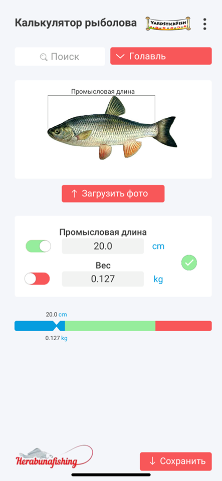 Для тех кто любит ловить рыбу и заботится о природе вышло новое бесплатное приложение - Yardstick Fish! Версия для Андроид: https://play.google.com/store/apps/...HdtNibNMWxfY0TouoInrEm86EhcJkHxZJPcjhDPUfXbG0 Версия для ИОС https://apps.apple.com/ru/app/yardstick-fish/id1497711333 Теперь можно в любом месте используя свой смартфон определить вес рыбы по ее длине, или длину по весу! Уникальный алгоритм позволит провести расчеты с точностью 90% для 22 видов рыб! Кроме этого Yardstick Fish на вашем фото сохранит параметры улова и Вы всегда сможете посмотреть на результаты рыбалки. Самое главное - линейка результатов подскажет какой размер конкретного виды рыбы рекомендуется отпустить (синяя зона) или какой экземпляр является трофейным (красная зона)! Поймал, Сфотографируй, ОТПУСТИ!