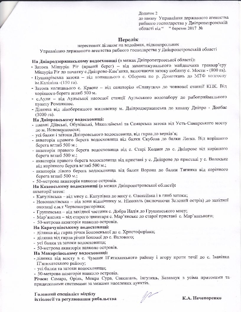 Запрет Встановлення весняно-літньої заборони на лов риби та раків у Дніпропетровській обл.