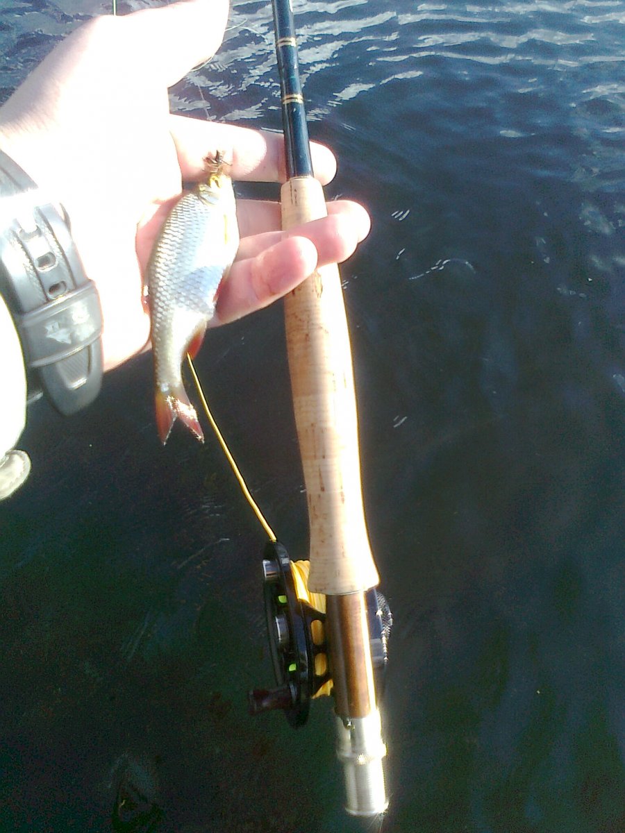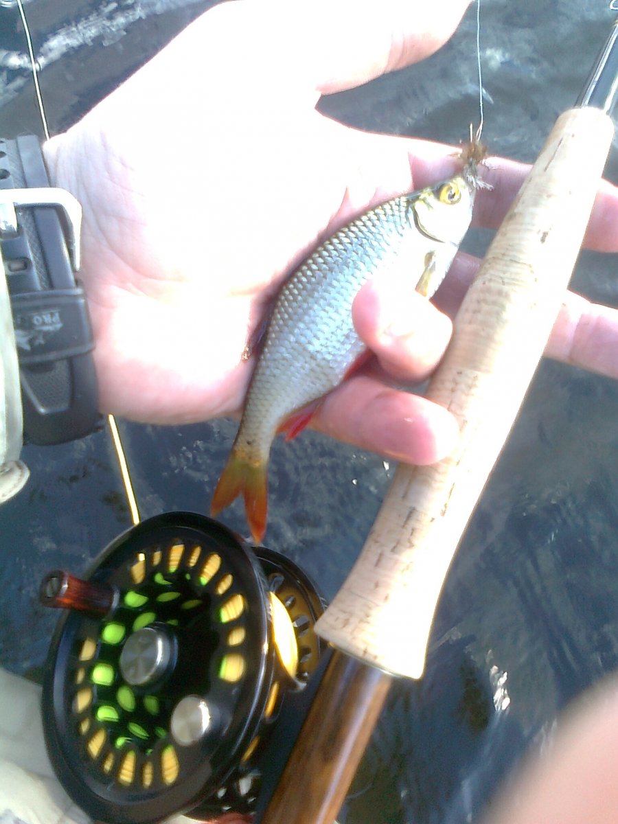 4-го выезжали вечером в район Баловки. Ловили ниже моста. На нахлыст несколько красноперок и верховодка. Поклевки возле камышей на метровой глубине.