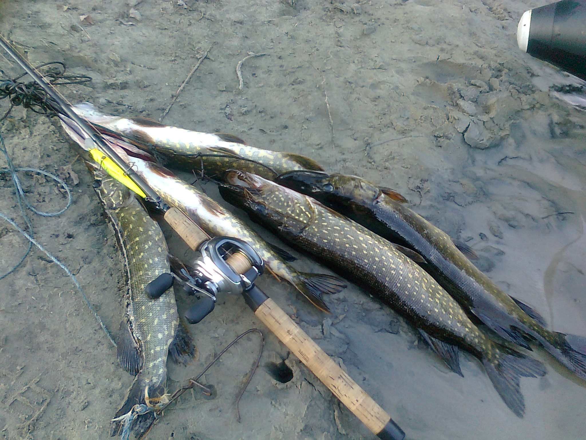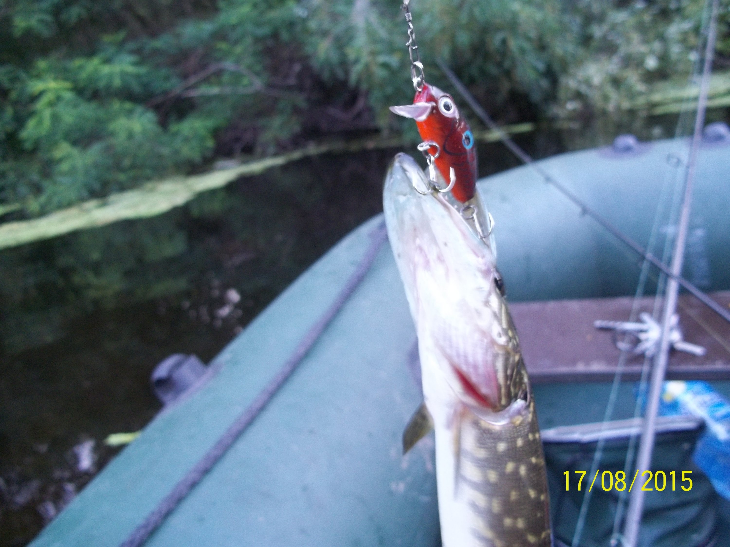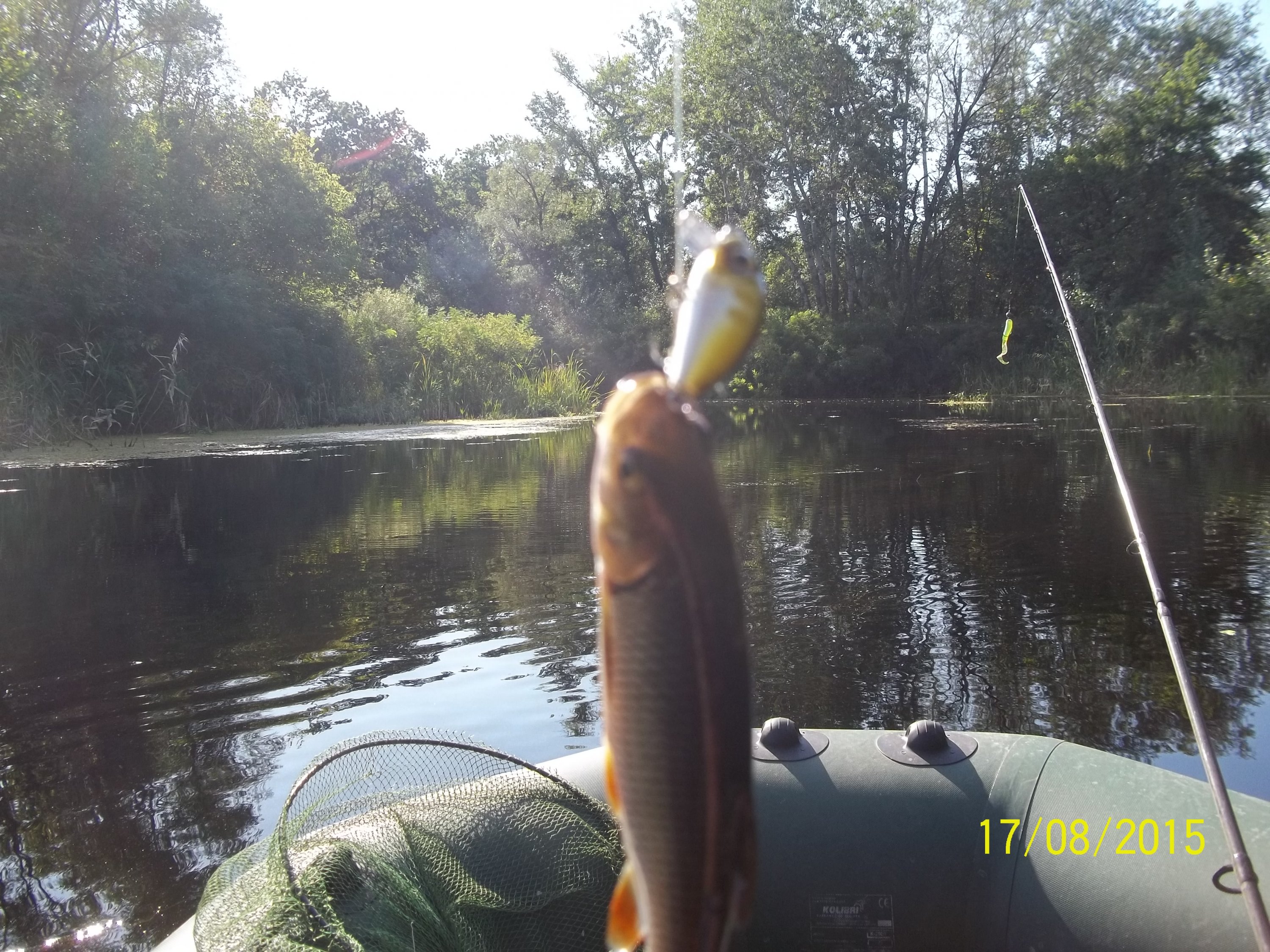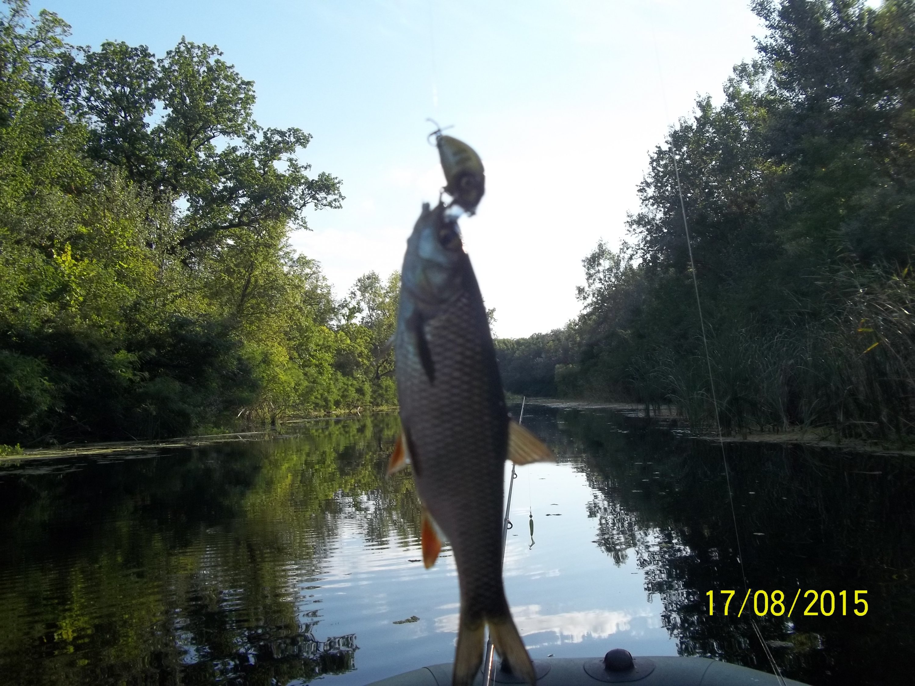Ловили щучку в верхнем течении р.Орель, село Маячка. Речка мелкая, лодкой еле пробирались - некоторые участки полностью накрыты плавучими водорослями. Щука клевала по-особенному. Брала жадно и точно, но не спервой проводки. У меня стоял вижин 110, напарник перебрал все, пока не поставил шумовой воблерок. Многих пойманных щучек отпустили, недомерки. Днем, несмотря на купальщиков и жару щука ловилась как и с утра. Местные жаловались, что из-за дамбы в Нехвороще река сильно потеряла глубину. Места вокруг реки - луга, тени мало.