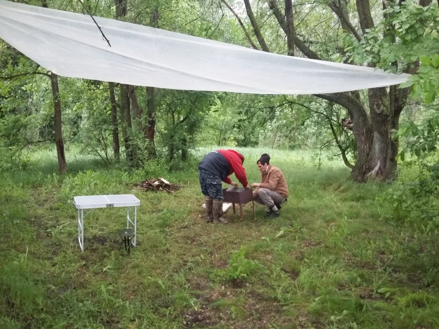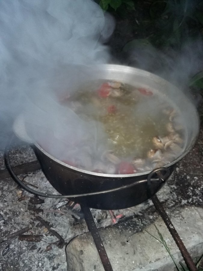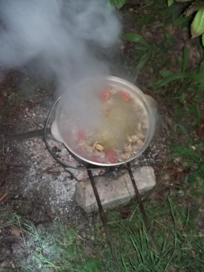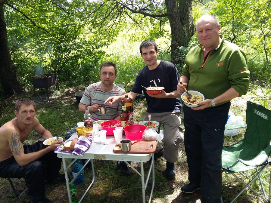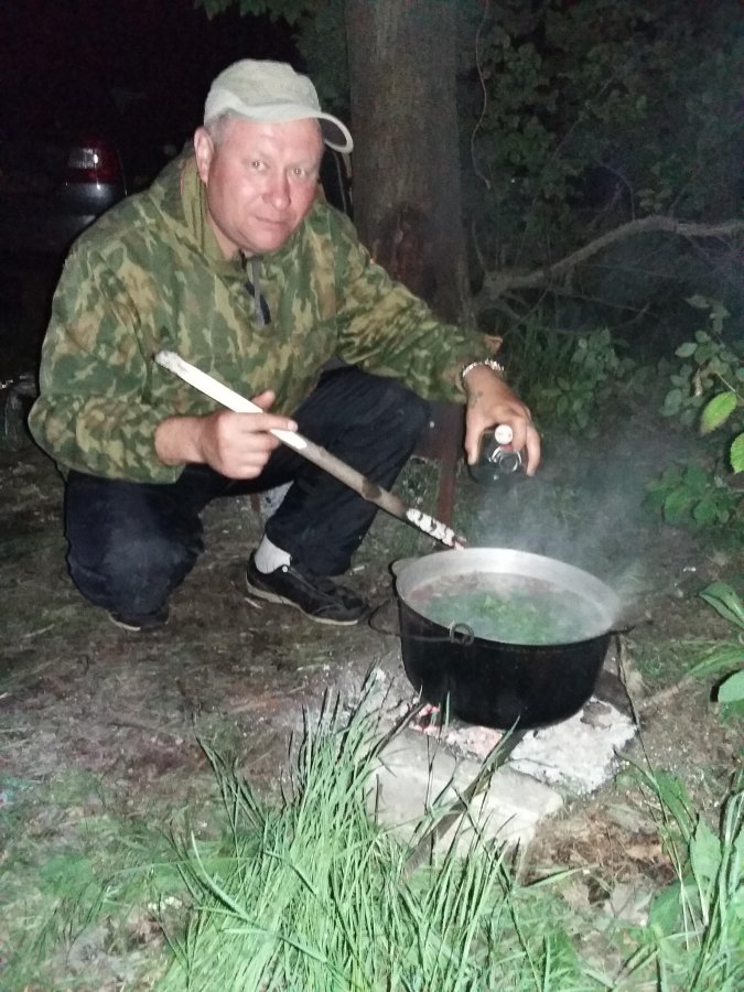 Сварив уху а Паша пожарил мясо на костре сели продолжать так до 1 ночи просидели кто :cr: а кто :kofechay: