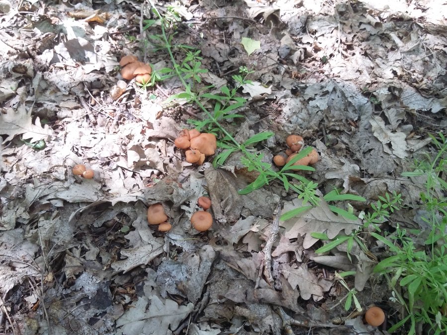 После обеда решили запастись на вечер дровами и при в ходе в лес обнаружил кучу грибов.