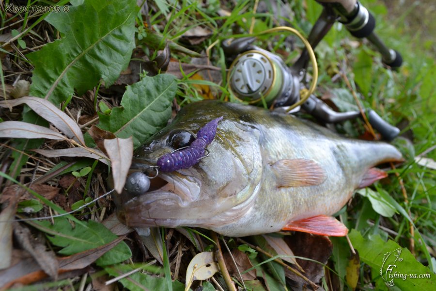 Коротко по ситуації: водичка вже холодна, а водорості та трава, як влітку, і це, враховуючи, перший мінус вночі. Щупокабр вперто мовчав, ігноруючи swing impact та LJ tiog'у. Провештавшись три години з повним нулем у заліку, вирішую перейти на fanatik degger 2,5" у фіолеті. Перший заброс і є матрос :D. Розмочив, нарешті. Другий заброс у приямок з корчами, на падінні впевнений "хап" зі злим та впертим супротивом у самісеньке дно. "Ось і щук": перші думки...фрикціон співає, спін в приємну дугу. Хвилина виважування і "орільський бас" в руках! 475 гр на вагах! :1_0072: Майже горбач! :zachet: Фанатік дебютував на відмінно!