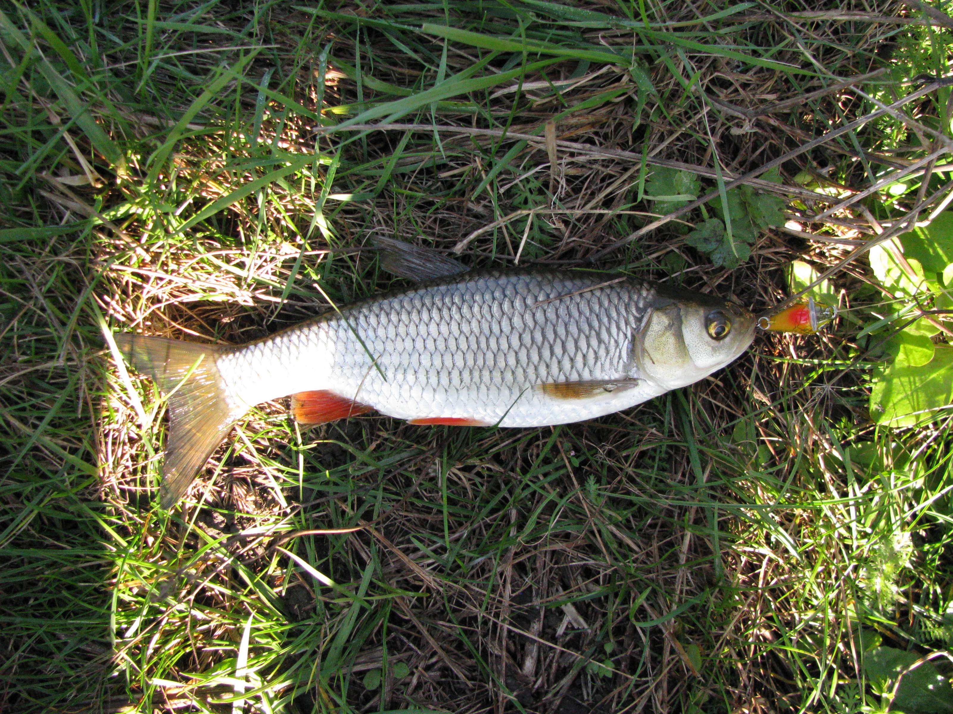 Теперь немного о технике ловли. Т.к. речка мелкая и заросшая, хоть есть и течение, то поперечные проводки сделать очень трудно, поэтому я сплавляю приманку по течению метров на 15-20, прячась в камышах (кстати голавль начинает бить по приманке уже во время сплава). Когда приманка достигает нужной точки, начинаю медленную проводку параллельно берегу. Т. к. проводка производится против течения, то очень важно не переусердствовать со скоростью проводки, особенно когда приманка начинает играть от одной лишь силы течения.