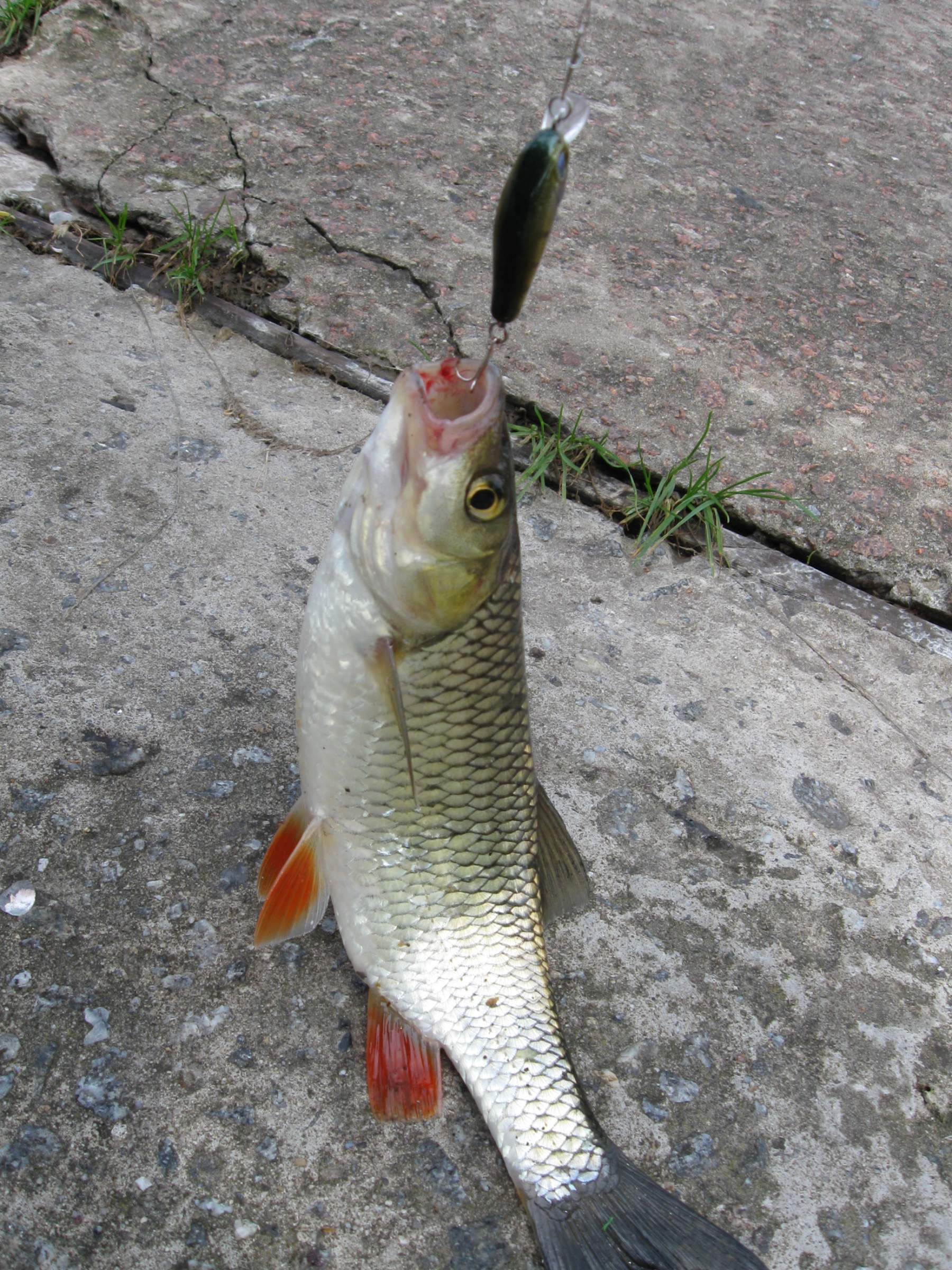 Плотва, дубль два. На месте был в шесть, рыбаков практически нет - всего 4 человека. Рыба прошеная: брала исключительно на пучек красного и кидать надо было чуть ли не на середину реки. Всего поймал 10 штук, 4 отпущены подрастать. Как оказалось это лучший результат на нашем пятачке.:1_0072::gi-gi: В 12 дня не выдержав солнцепека поехал домой.
