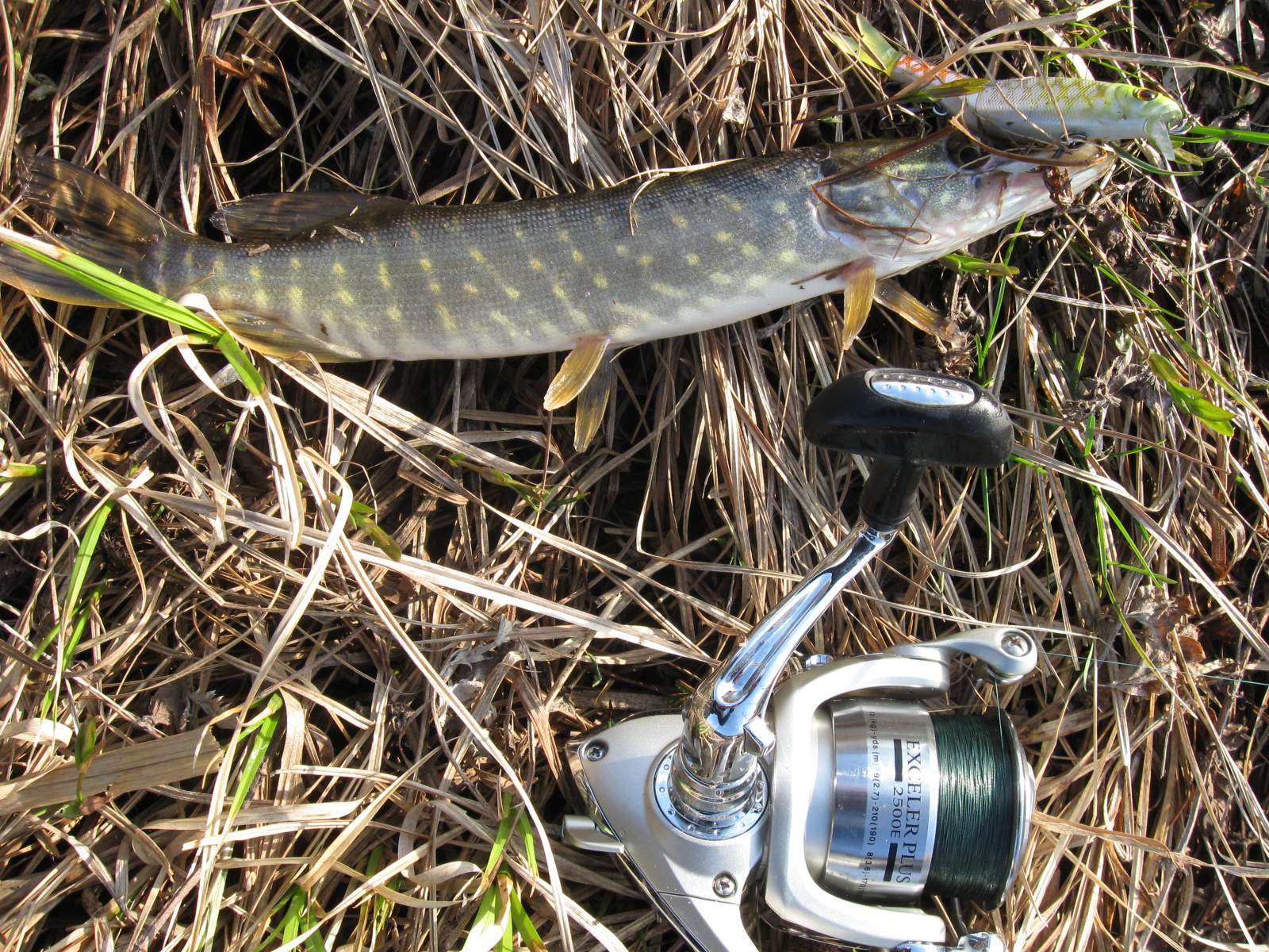 Сегодня выбрался на Деснянские просторы,погода супер,ветра почти нет,рыбы тоже нет:)Фидеристы все скучают или медитируют глядя в небо,вообщем плотвы тоже нет,разве что у некоторых по пару штук с ладошку.Открыл для себя новое болото,которое просто кишит мелкими щупаками,штук 10 выловил и бросил издеваться над малышами...Сместился на Десну,воды особо не много как для этого времени,пробовал джиговать и твичить,результата 0.Одеваю новую смитовскую колебалочку и начинаю теперь уже издеваться над жерешками,но это дело быстро надоедает,собираюсь и сваливаю домой.Вот такой вот день водяных монстров:)