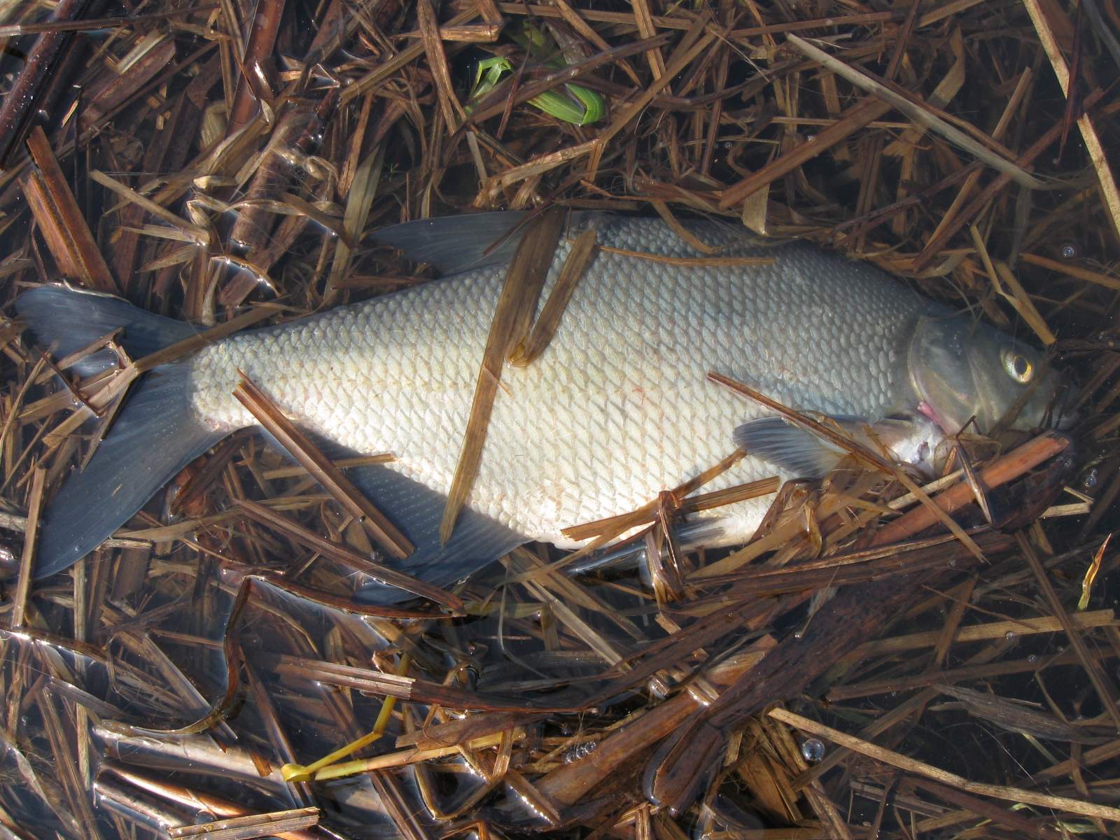 Сегодня день рыбалки на Десне запомнился разве что хорошей погодой и двумя сходами щуки и жереха.С утра ехал на Десну через старицу,там вовсю терся большой лещ,подойдя ближе увидел жуткую картину:видно ночью был резкий спад воды и рыба не сумела быстро выбраться с прибрежной растительности,пришлось выступать гринписом:)Выкинул обратно в воду десятка два больших лещей(успел до прихода отдыхающих),помочь не смог только одному,реанимация была бесполезна.Вообщем с чуством выполненого чего то хорошего вернулся домой.Кстати впервые задумался о негативном влиянии спадов уровня воды во время нереста,короче следили бы как то за этим что ли....