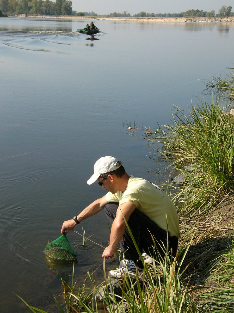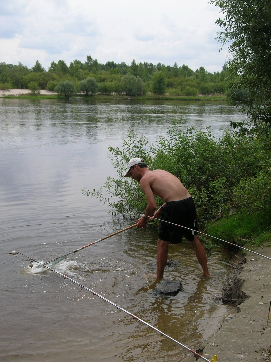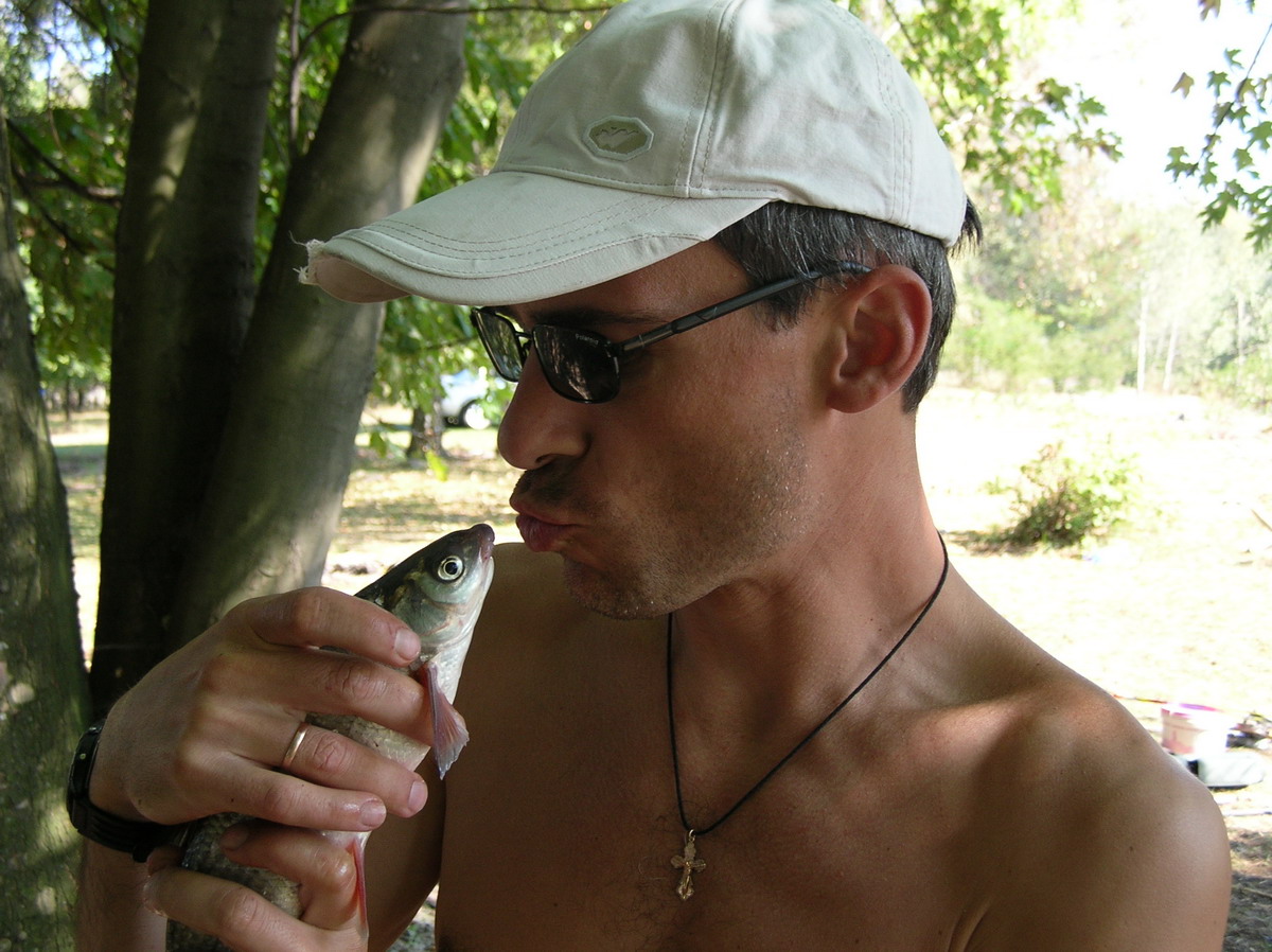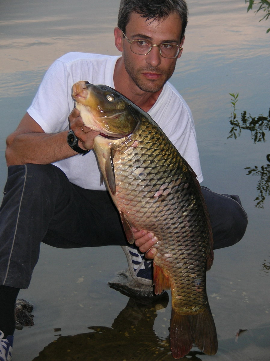 И еще в этом районе нередкий гость- дикий деснянский сазан, клев которого очень яркий. Прут, стоящий на рогачике вдруг резко клюет носом вниз, ручка подлетает, а невка визжит как болгарка. Только в руки возьмешь- натянет и обрыв. Такое действо у нас называют- "электричка прошла." Вынимаешь- поводков как небыло. Мне кажется он не на пенопласт вовсе зарится, а засасывает всю кормушку, набитую горохом и просто себе идет дальше. Сопло то у него- будь здоров. За все время отдыха был свидетелем поимки последнего только два раза. С одним даже пофоткался (не мой, словил сосед по базе, сын моих друзей в возврасте 14 лет). Неделю по базе как король ходил.