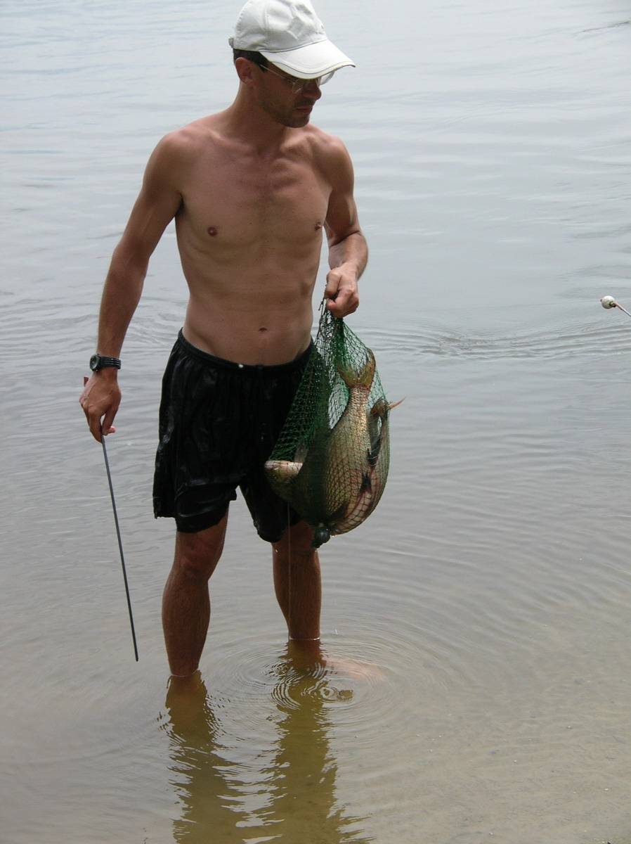 Нашли яму, выход с 11м на 3м. Место очень интересное (место могу продать или поменять на новый G.Lооmis или St.Croix :bm: ), тычков в резину была масса. Наверное все мелкий судак. Засек только одного. Думаю, учитывая тамошнюю глубину- должен стоять и крупный, т.к. чуть дальше на меляке все утро гасил верховодку "дядя" кила на 4-5. Потом ушел отдыхать на глубину наверное. И подозреваю, что он там не один, т.к. мощные всплески на косе неподалеку были одновременно в разных местах. Думаю там должен быть и сом.