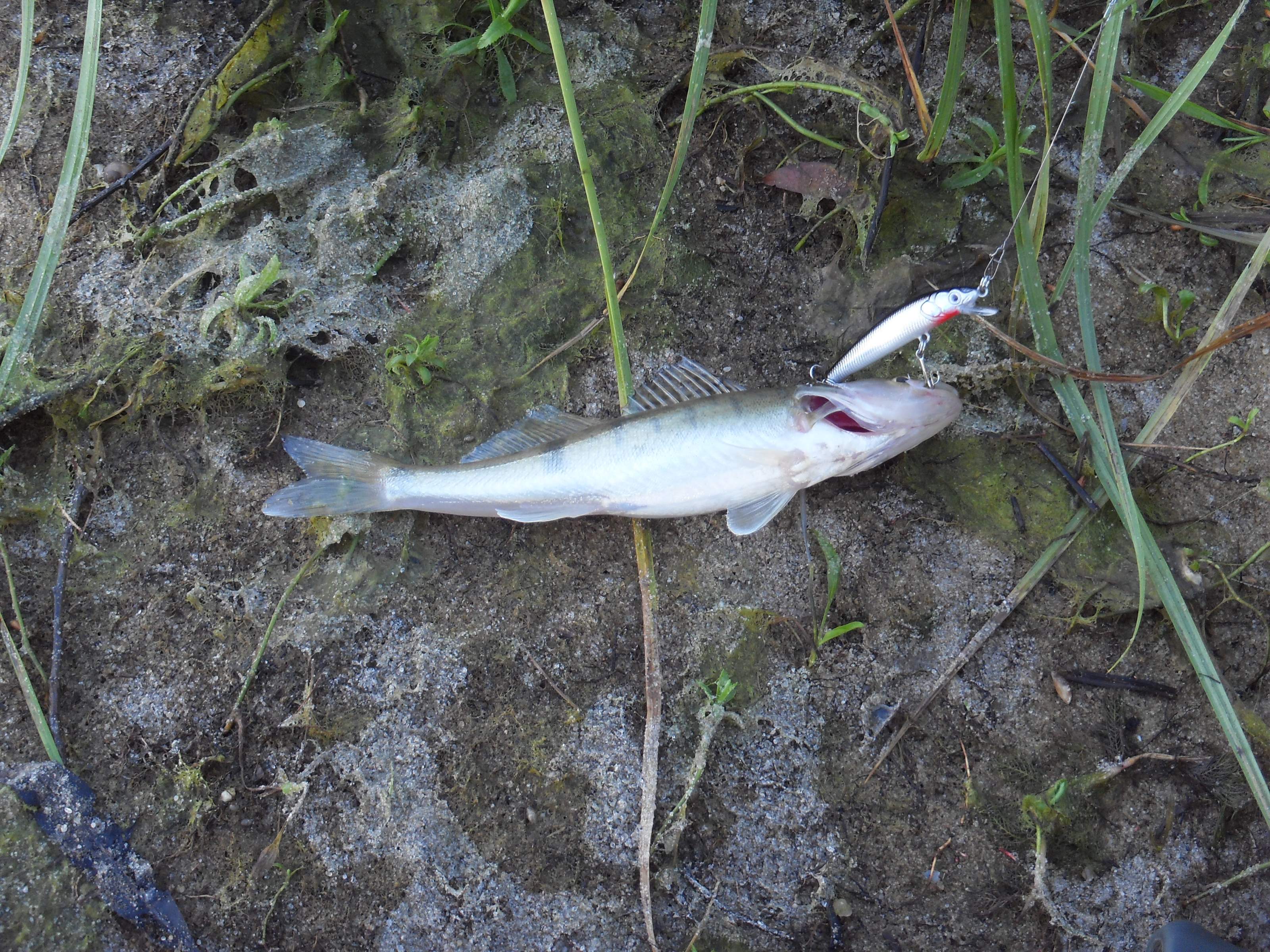 На воблерок от "Strike pro" садится судачок тоже незачётного размера.