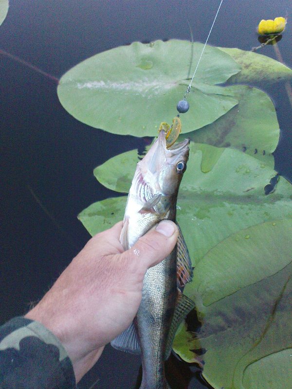 Судака поймал вечером. Всю ночь- ни удара. Жабы и "унца- унца" с Гидропарка не дали глаз сомкнуть. С 4х до 7и утра, щук активно охотился, но не за моими приманками. Окунь начал брать, когда дали воду. Коллега- рыболов, рыбачивший рядом на живца (синька) выиграл у меня 3 к 1 (по окуню). В 11.00 поехал домой т.к. глаза устали. Отакэ.