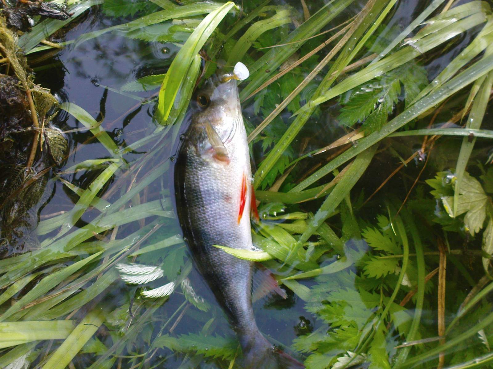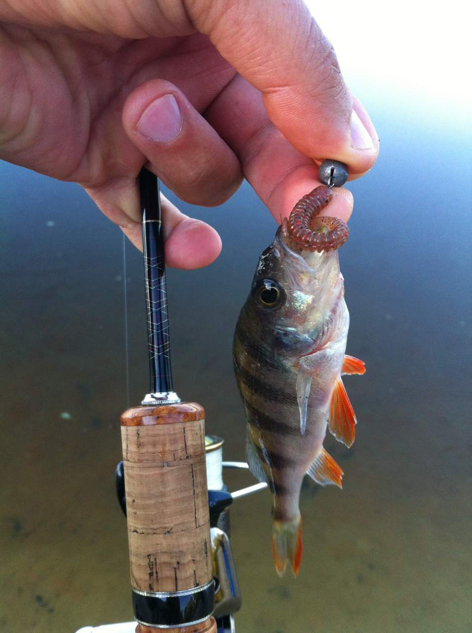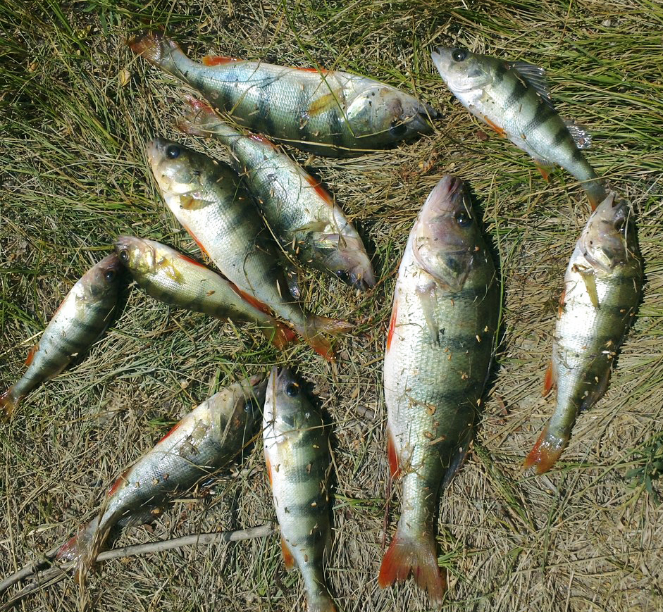 До восхода солнца окунь клевал на выбросе,потом переместился в траву.