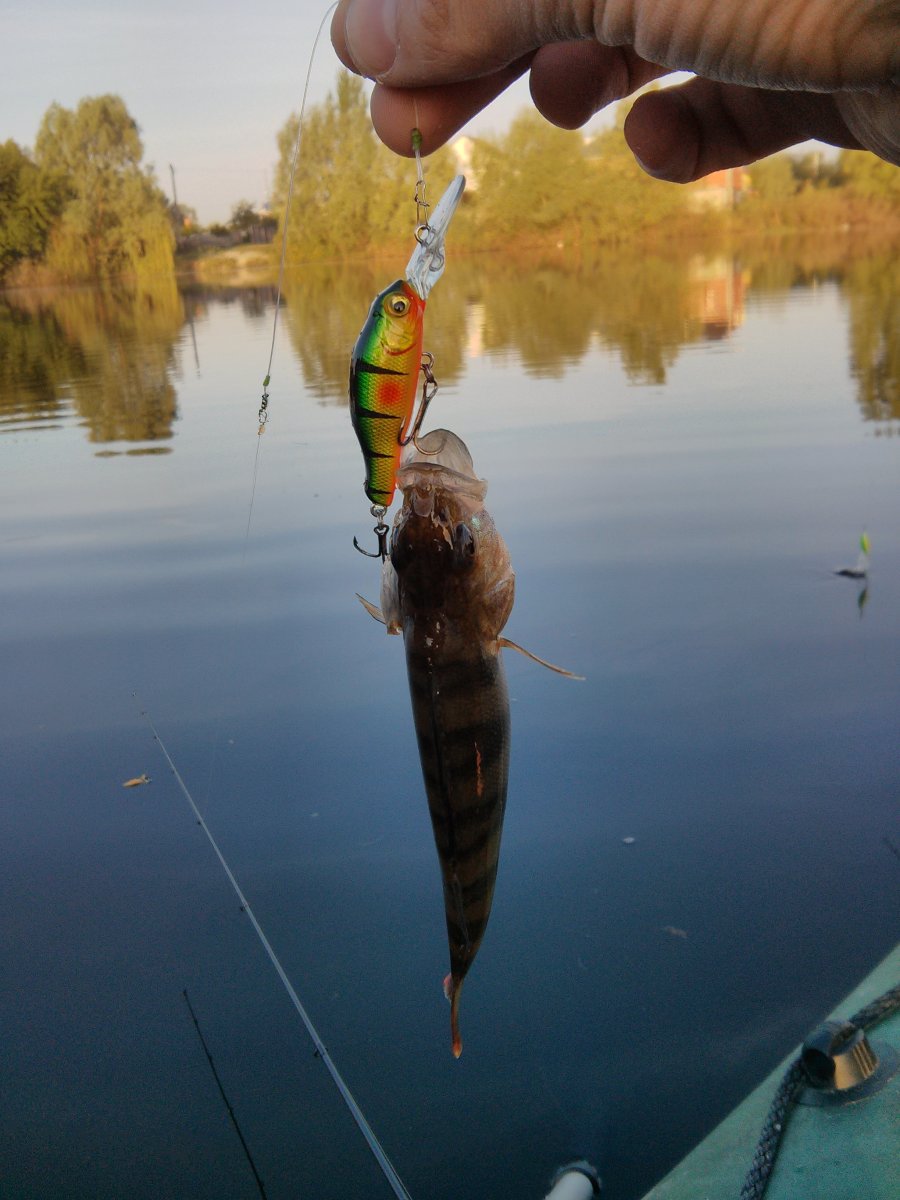 Утром отправились на озеро в осокорках, покататься на лодочке, помучать окуней. В итоге, всего 4 полосатых за пол дня на двоих..