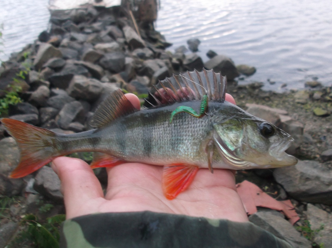 А вот клевало слабовато. Окунь был очень прошеный и мелкий. Брал на Sexy Impact и рачков от