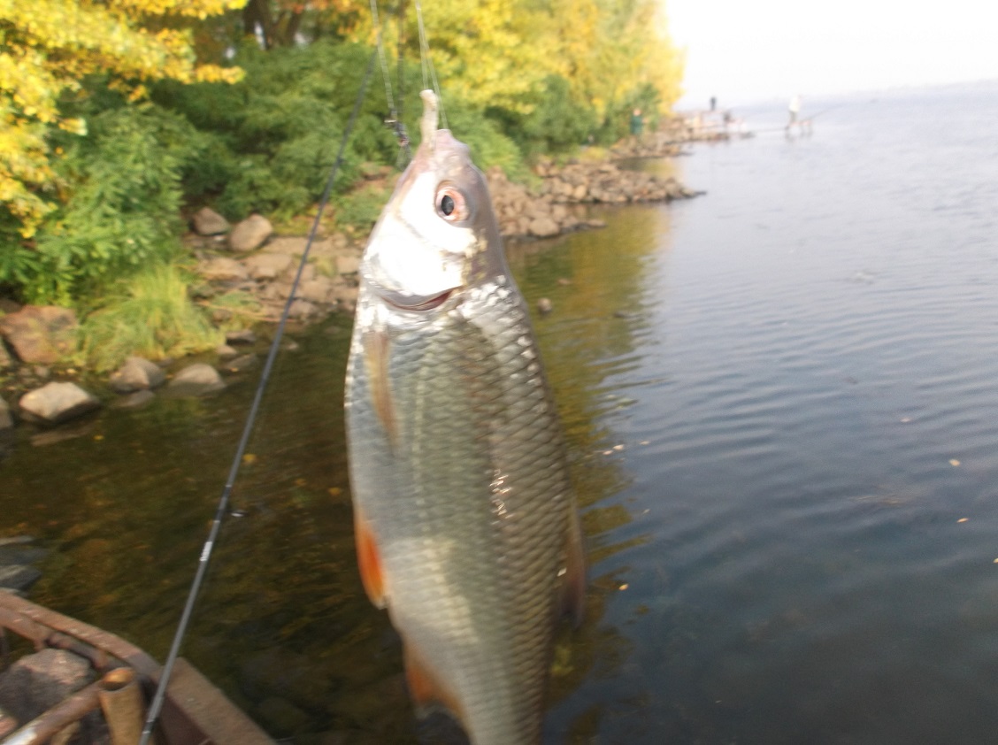 Закрытие фидерного сезона для себя решил провести на газопроводе. Проснувшись по старому времени в начале шестого, не спеша поехал на круг Героев Днепра за наживкой. Купив черви и попив кофейку:kofechay: так же не спеша по темному выдвинулся на место ловли. Приехав на берег понял что еще бы пол часа и забрасывать фидер пришлось бы из за кустов, народу как на газе в выходной:фигасе:. Ловил на один фидер 3.6 до 90 г. кормушка 80 г. поводок 0.18 длина 70 см. крючки 6. Корм с добавлением мотыля на крючке любые комбинации из красного, белого или вместе но пенка обязательно. Сходов было всего пару раз и то под берегом. Погодка радовала, некоторые рыбачки даже загорали.Наблюдая за соседом который бегал возле трех прутов, мне почему то показалось что ловля с платформы не совсем спортивная рыбалка:D. Благодаря братьям рыбакам не снимающих бубенчики при вываживание, выработал рефлекс как собака Павлова:mozgokljuy:. Рыбу не взвешивал но где то около трех кг.