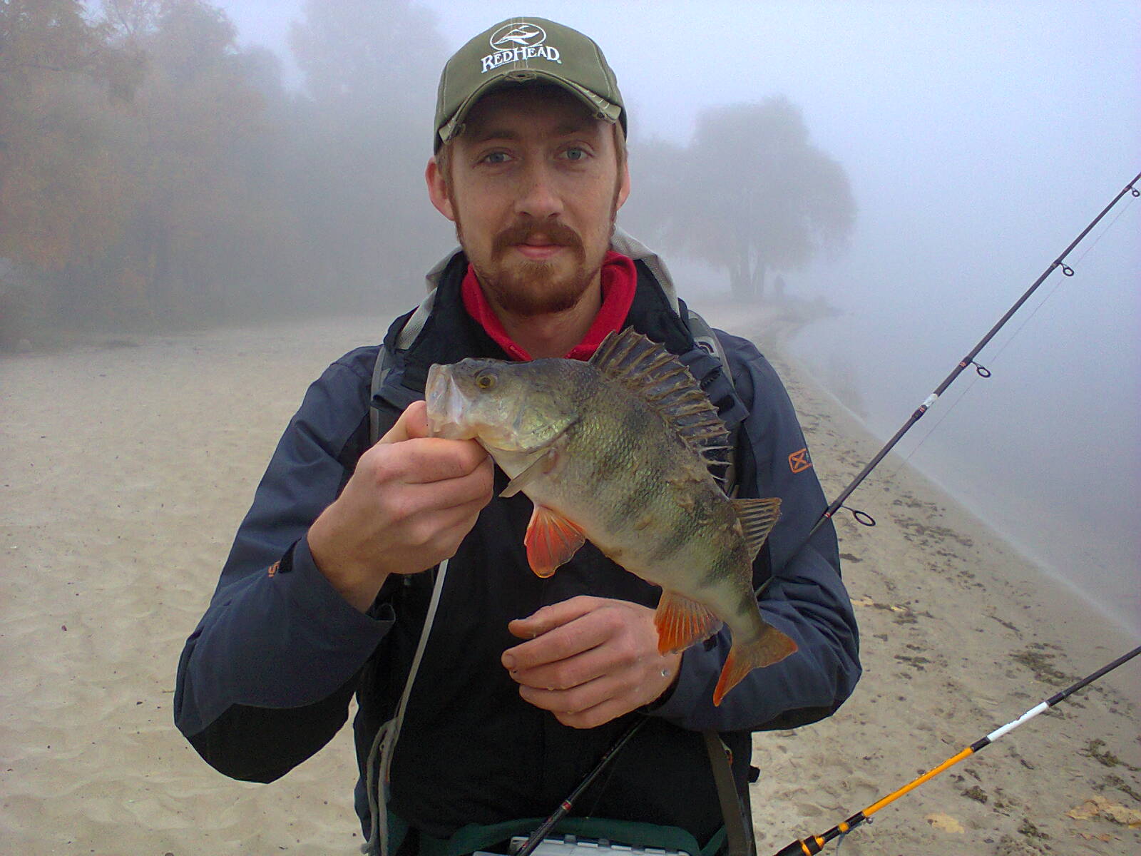 СБ: я и Valera 7 утра вышли и охренели - ветер ураганный, деревья загибает, в ушах свистит, надутым капюшоном стучит по затылку. Но решили таки идти на министерку (мол, матч состоится в любую погоду). В 7.20 на берегу и министерка похожа на министерское море: волны захлестывают на берег, ветер боковой и на забросе шнур в дугу и на камыш:)) Вощем, спиной к ветру не получилось - там дома местных бедняков с высокими заборами. :)) Вощем, за час 3 окуня в ногах на мормыху. Решили сходить через дорогу на верблюд и встать спиной к ветру. Где-то в 9 на верблюде - народу валом, окунь бьет под берегом как дурной. Отводной, аджи мит и на каждом забросе по окуню. В очередной раз подарил отводной начинающему рыбаку - привет если читаешь. К 11 замерзли окончательно - десятка три запирсинговали. Размер, кста, больше средневерблюдовского в течении года:))