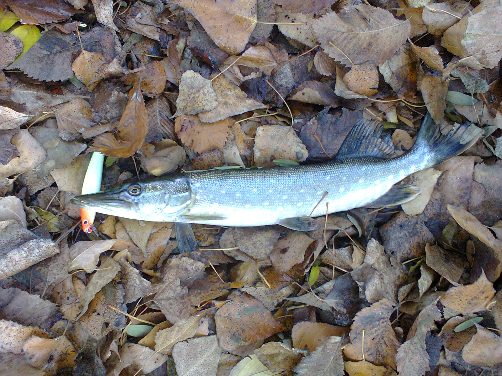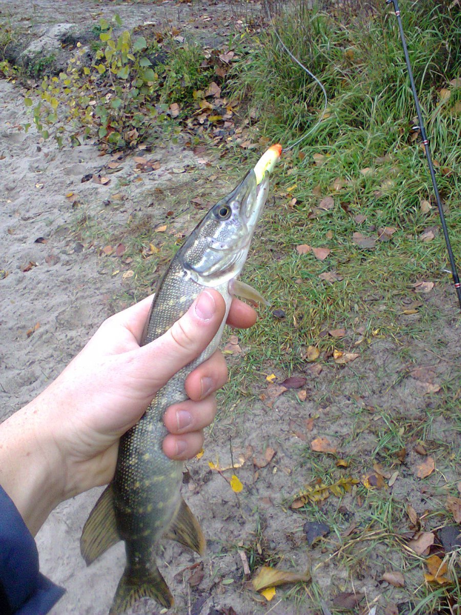 Рыбачил сегодня на озёрах возле м.Славутич. Было поймано два мелких шнурка и одна зубатая до 1кг. Всё взял на новый воб купленный на выставке Strike Pro Arc Minnow JL-092(sp) в цвете A116L, а вод любимчик Squad Minnow 80 принес ток один удар, после которого пришлось перевязать покоцаный флюр. Но кроме радости за новую покупку получил и порцию негатива, наткнулся в двух местах на заборы, которых ещё летом не было, вот :censored: всё им мало(((