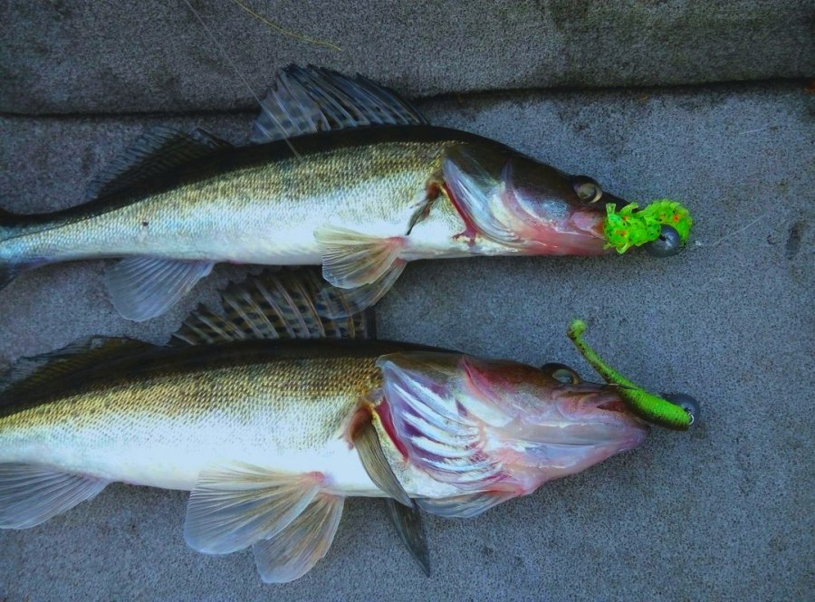 Единственный минус - это жуткий ветер,который мешал на протяжении всей ночи.Приехав не много пораньше, первым делом ловили джиговую рыбу.За полчаса ловли был пойман не плохой окунь и парочка стеклянных судачков,которых Максим уговорил на поклевку.