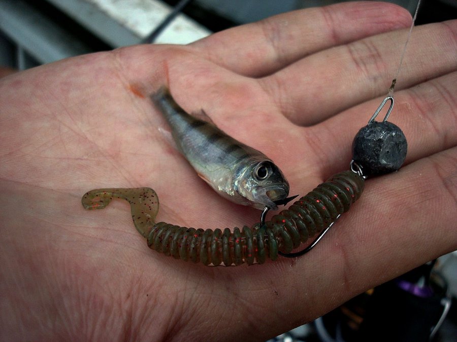 Клевало все,но только не окунь и в очень мизерном количестве.До восьми вечера наковыряли с десяток окуней,бычка и два голавлика.Причем голавлики не брезговали и джигу размером в 2.5''.Рыба на точке стояла,но вот открыть ей рот - это на сегодня была трудноватая задача.