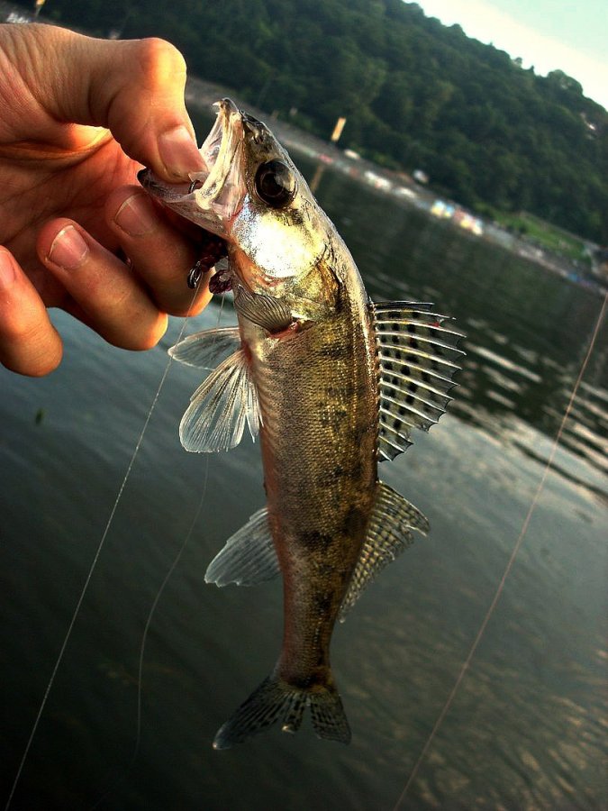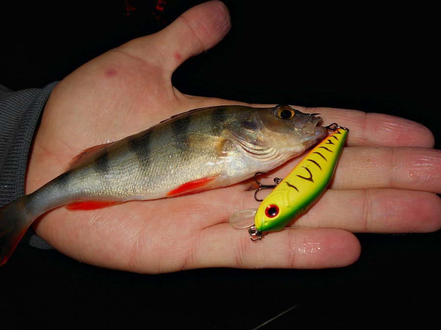 Дело близилось к вечеру.На "далекой" точке с сильным течением начали клевать судачки,да не простые,а полностью стеклянные.Но то,что они тут кормятся,радовало нас,ибо в определенное время сюда подойдут особи по крупнее.Собственно так и было,но только рыб крупнее оказался умнее.Начинаю с проверенного - кренки.Есть поклевки,но реализации ноль.Потом в воду летит Tricorol,который по нашим словам "ловит за спину,а багрит за рот"и принес первых судачков.Еще не много правильных мыслей и движений и ключик подобран.Важной рыбе в этот вечер нужен был умирающий твичинг.Таким методом судачка мы собрали - я и Usami Datsu 50SP-DR.Начинало уже клонить ко сну и первым не выдержал Максим.Я же остался сам-на-сам с мелкими рыбками и продолжал искать одиночные поклевки.На одной из точек я услышал "чавк-чавк",сначала не придал этому особого значения,но когда это повторилось,я снимаюсь и плыву туда.Как оказалось - окуня не спали,спал только Макс. И проспал раздачу,я конечно пытался его разбудить,но у меня не вышло :)