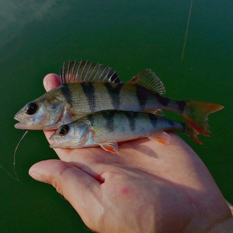 К утру ловили на том же перекатике.С первых забросов у Максима кто-то отбивает 2 колебалки.Печально конечно,а все из-за флюра,который был перетертый.Окуня как окуня - на джиг и колебалки отзывались на ура!Собственно такая "окуневая" ловля уже начала надоедать и мы решили сплавляться ниже.Но там кроме тех же окуней мы ничего и не увидели.Собственно получилась крутая и очень рыбная рыбалка!
