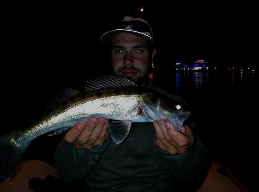 Когда стемнело,мы решили переместиться на одно интересное,но далекое место.Оправданно было это или нет,я тогда еще не знал,но что-то подсказывало мне,что я делаю правильно.Так как таких рыбалок в моей практике не много,отталкивался от элементарного.С первых забросов на точке стекляшки начали отзываться на воблера - значит делаю все правильно.Спустя очень короткое время, выход заканчивается и остается только искать и ждать.Через пару часов,методом проб и ошибок удалось подобрать ключик.Судак был уже крупнее,давал достойное сопротивление,а ловля таких рыб приносила одно удовольствие.