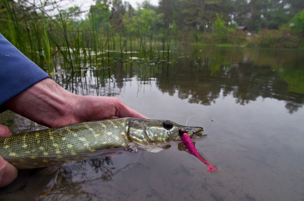 Большому куску - большой рот? Та нет, бред какой-то. Большому куску - любой рот обрадуется. Четырехдюймовую Sawamur'у срезали с первого же заброса, Swing Impact Fat ушел следом. Клевало не часто, но по размеру клюющей рыбы все ясно. Различие шнурков и нормальной щуки очевидны. Шнурки на берегу, а достойная рыба теперь обзавелась пирсингом.