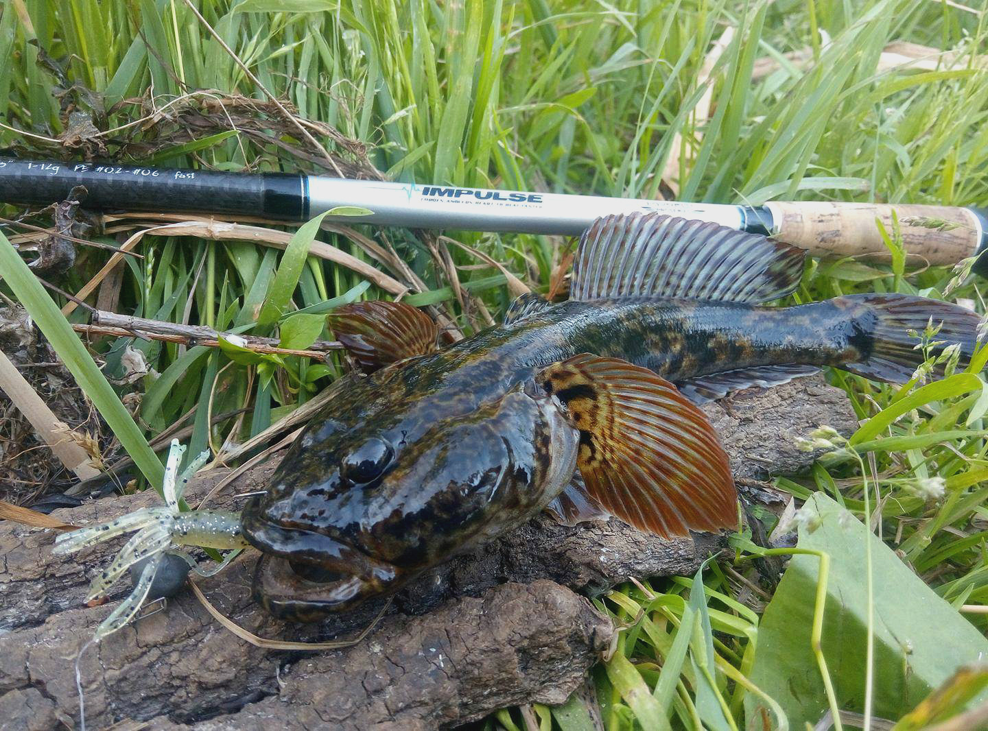 А тем временем бычки - монстры уже стали соседями с местными судаками. Иногда размер этих рыб действительно впечатляет и попадаться они стали чаще, причем с судаковых мест и на судаковые приманки. Сегодня ловили исключительно клыкастого большими приманками. Активность его была низкой, о чем говорили легкие "тыки" в чебурашку. А вот так называемый кнут, отлично поместил в себе четырехдюймового червя от Big Bite Baits! И куда ему там влазит? Не понятно...