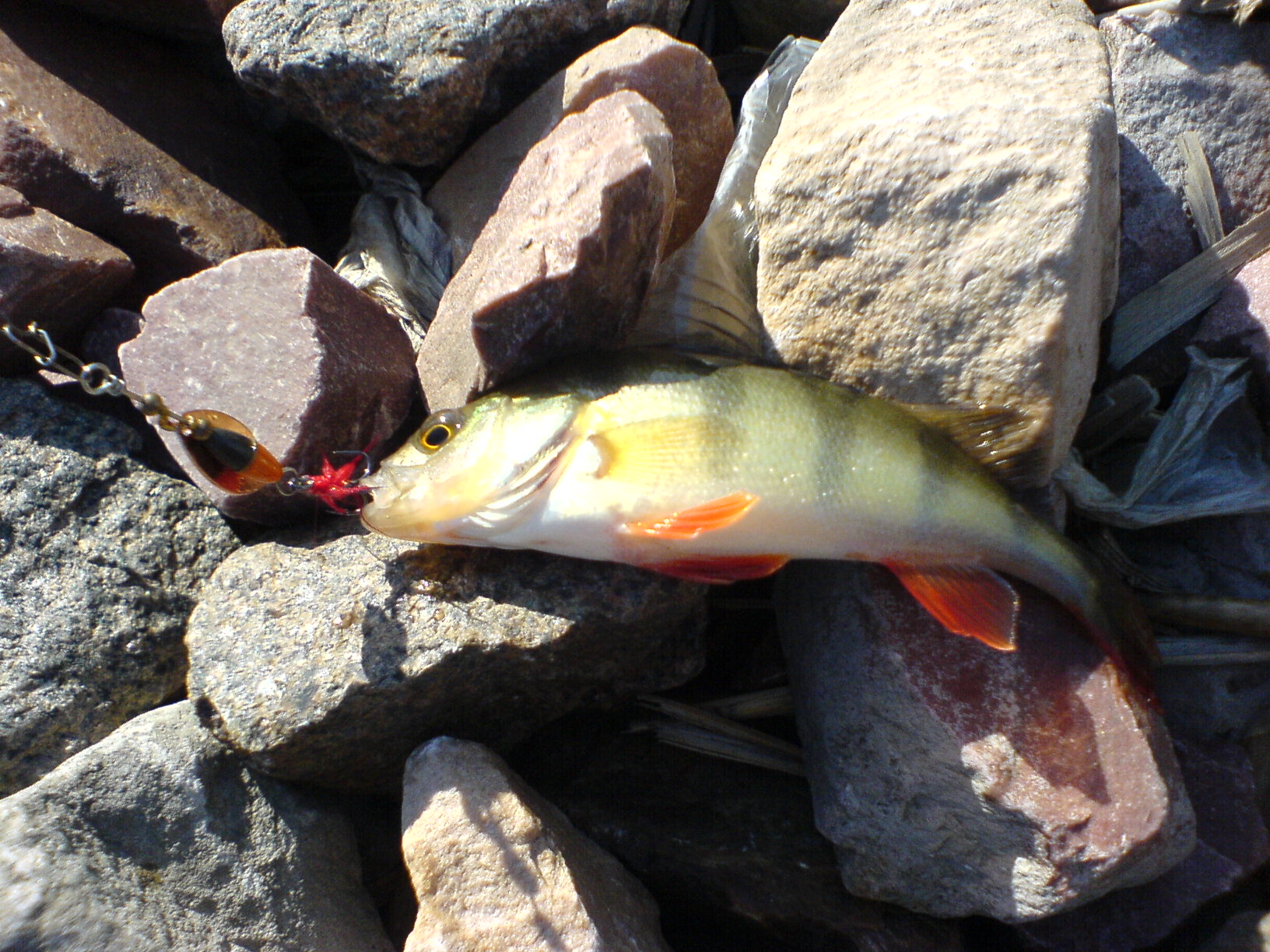 Провел "маньячкой" перед носом у рыб, те отвернулись. Прошедши чуть вперед решил покидать 35 Ридж, первый заброс принес карандаша, второй - второго. Дальше поставил попер Армс микро - чуть не зарядил бобру в лобень. Следущей приманкой был Ужгородский стик. На него соблазнился краснопер. Вот такая микро рыбалочка на часок получилась.