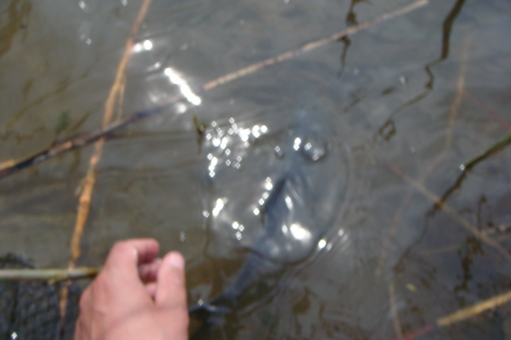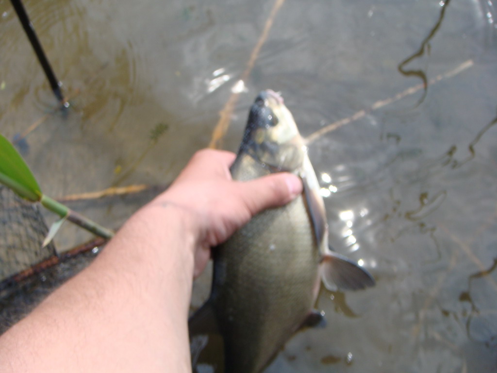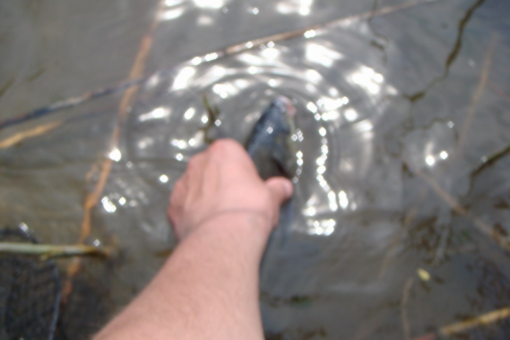 Вчера, проспал и только к 9-ти выбрался на Тягле. Возле дамбы встретил грустного Славу aka KVN, побросали вместе - глухо. Слава пошел на работу, а я на затоки. На затоках, тоже глухо. С горя достал я из багажника поплавочную удочку, насадил червя и уселся отдыхать. Через минут 30 поплавок утонул, я даже не подсекая под мотал леску, никакого сопротевления... на крючке лещ 0,5-0,7. Подобных поклёвок после было 6-7, мешали бутерброды, разговоры по телефону и т.д., короче зевал... Второго взял через 2 часа, такого же... Обоих отпустил...