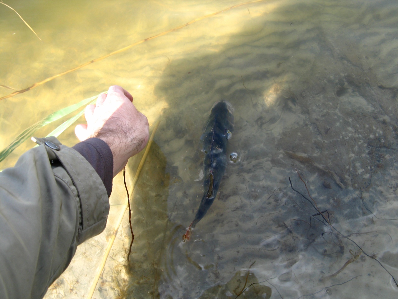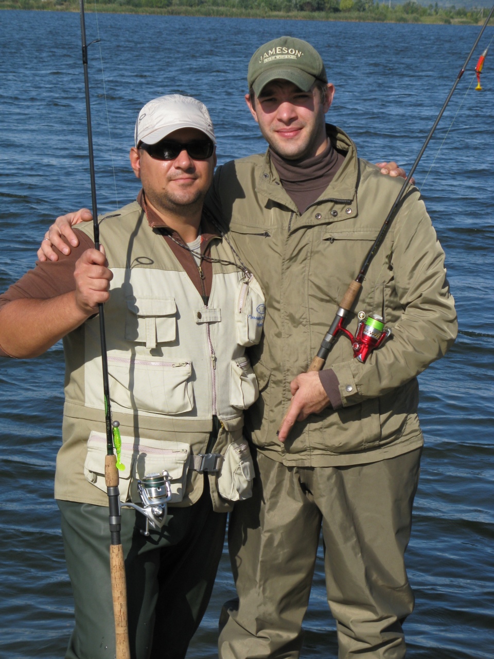 С 8 утра до 17:00, обойдя озеро с 3-х берегов (восток, юг, запад) было только пару тычков и я словил окуня на 200 гр, который был сфоткан и удачно амнистирован. Кирилл в час дня уехал домой, где его ждали новоиспеченные семейные заботы, а мы с Димоном отправились на поиски щучьего эльдорадо.........которое после 17:00 было найдено мною в кол-ве 2 щучек. 0,7 кг и 2,5 кг.