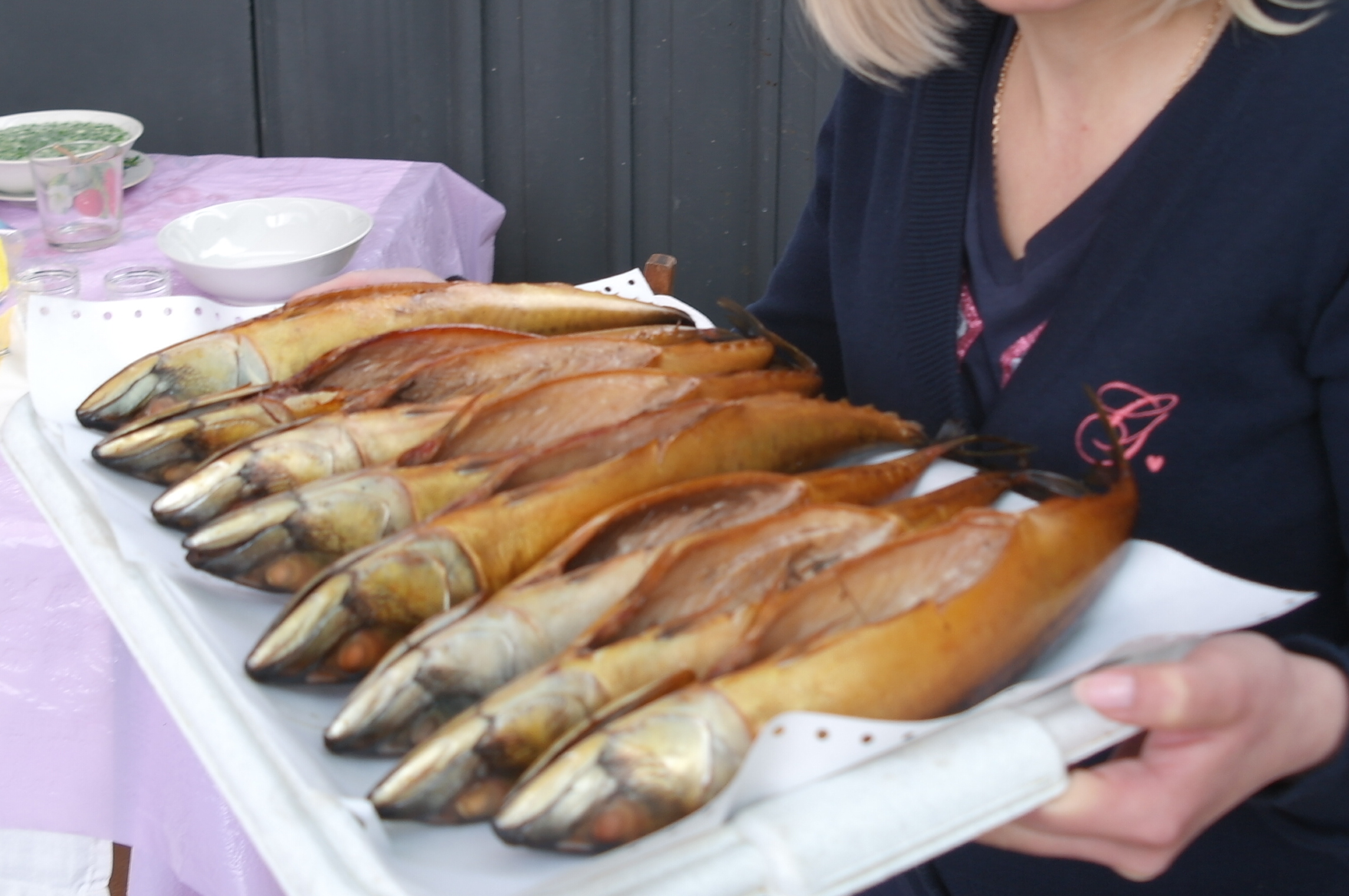 Для приготовления продуктов горячего копчения мы используем вот такую конструкцию, мангал+коптильня. Мороженная скумбрия размораживается, потрошится, обильно солится. Выдерживаем рыбу в рассоле сутки, промываем, вымачиваем час в воде.После приготовления шашлыка на мангале вся конструкция(мангал+коптильная камера) хорошо прогретая. На угли высыпаем пару хороших пригоршней ,предворительно замоченных,ольховых опилок. Мангал плотно закрываем крышкой(лист металла на петлях по размеру мангала).В коптильную камеру на две полки закладываем рыбу, промокнув салфетками. На полках рыба лежит брюхом вверх. Так как процесс длится часа 3-2.5, и если положить рыбу на полки брюхом вниз , рыба потеряет много воды и получится суховатой. Раз в 30-40 минут приоткрываем крышку мангала и по надобности добавляем опилок. Готовая, "золотистая"скумбрия приготовленная своими руками не сравнится с покупной - Вкусно, Полезно да и по деньгам значительно дешевле.