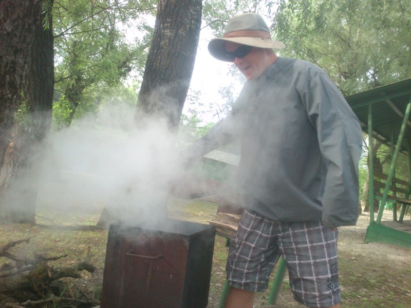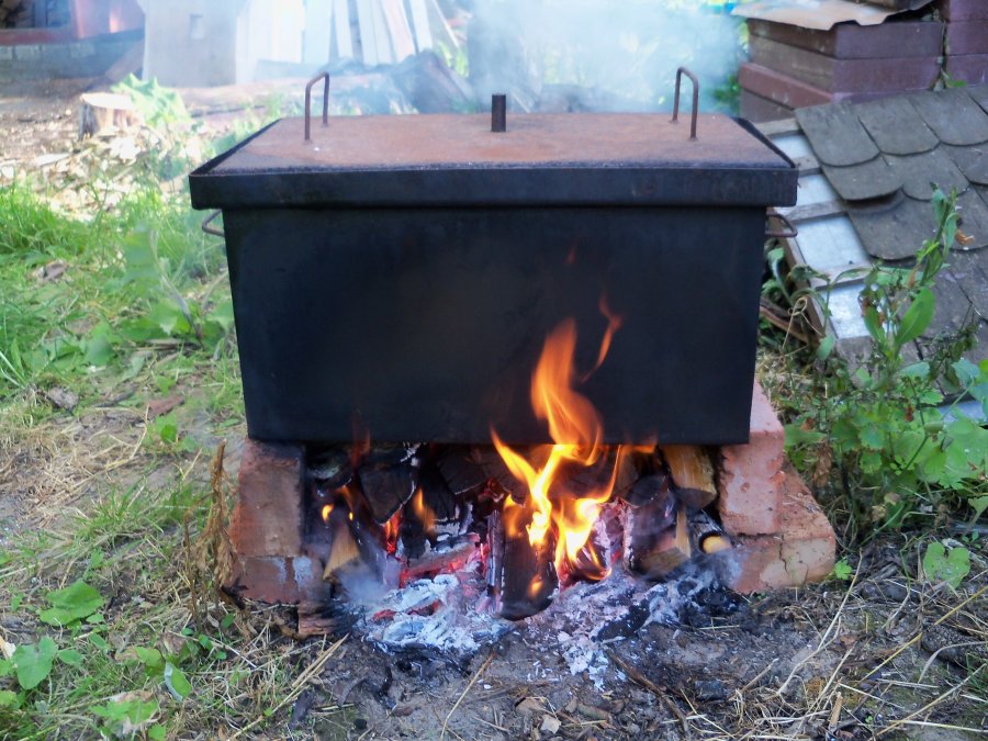 Мелкие ветки ломаю, на сколько это удобно можно сделать руками, реально не заморачивался, с этим, ну веточки получаются тоненькие по 5 - 10 см. длинной, коптилка не маленькая, может из-за этого размер древесины не критичен. Коптилка с виду страшненькая, даже немного ржавая, но рыба вкусная получается))))