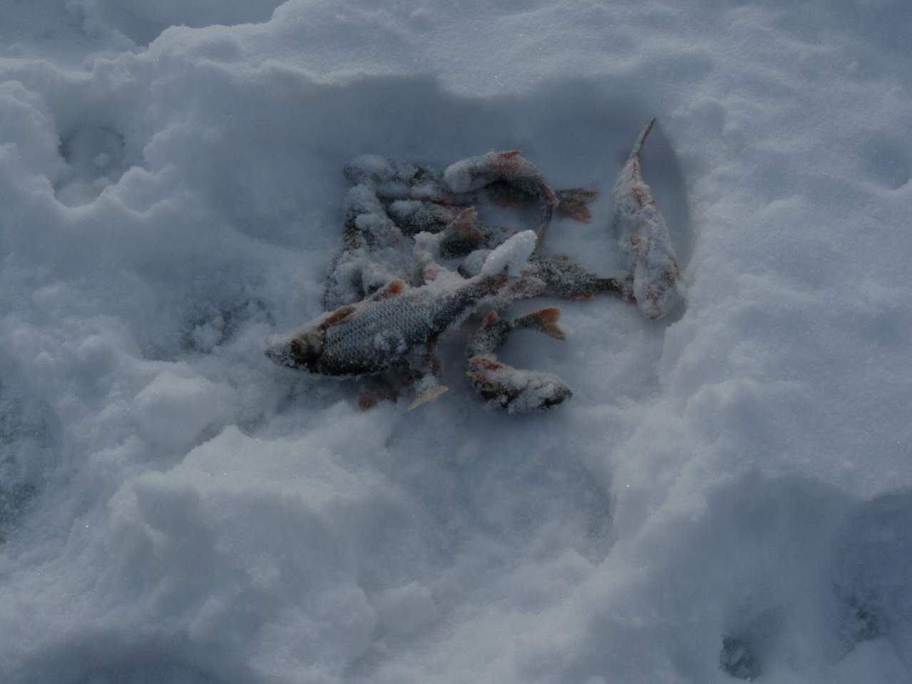 Рибалок майже не було. Багато снігу, перейшли русло і майнули під протилежний берег. Кльов порадував. Із перших лунок беру плотвичку, потім - йоржика, а там понесло...