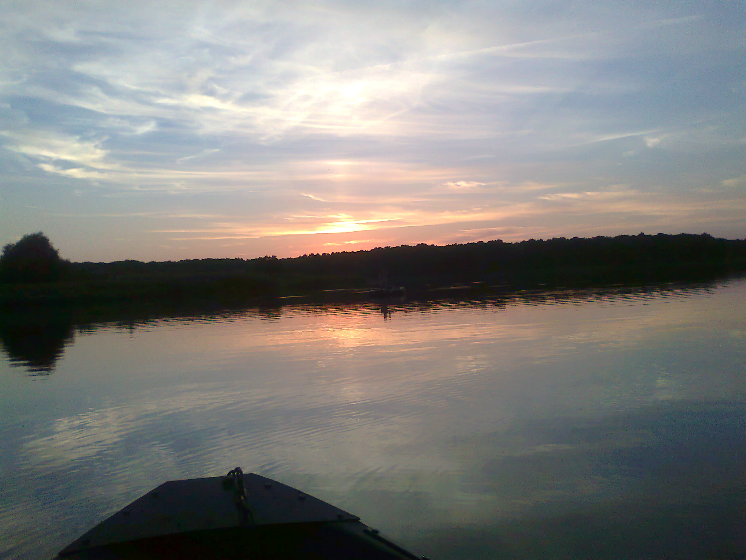 Привіт усім любителям риболовлі...Всіх вітаю з святом Спаса, здоровя і удачі на любимій ниві...Я теж був вчора на водосховищі...На воду вийшов в 6-00год. від церкви в Набережному...Пішов перевіряти щучі тропи...Мав з ранку дві покльовки зубатої...Покльовки на колебло "Атом"...Перша--зубата добряче пещокотала нерви, трофейна, помучився допоки підтяг до човна, натиски були солідні, фрікціон дзижчав як скажений, і під човном зійшла, спінінг від зриву аж з рукою мало не вилетів за човен...Свічки не робила, боролась господиня водойми з глибини...Друга покльвка, щуреня, чуть більше 0,5кг....Собаченя, поки тягнув, воно декілька разів вийшло на свічку, а перед човном звільнилось...То і добре, жабра значить уціліли, буде жити...Після того покльвок не було, за винятком полосатих спортсменів, які атакували оберталку...Пройшов аж у Хрінники, нічого...Вийшов на берег перепочити і чекати колег, з надією на вечір...У вечері вийшли на воду десь о 17-00год....І тут у мене почались невдачі крупного масштабу...Вийшла з ладу котушка на тяговому спінінгу...Все, залишився з лайтом до 10 гр...Взяла досада, пішов ловити окуня на юшку...Спіймав на оберталку декілька окунців, чуть більш спортивної форми, малеча брала, топив на місці...І пішов на берег...Помалу склав човна, речі в авто і зачекав колег...Вася, взяв зубату вагою до двох кг, Микола-Доктор, поставив пірсінг зубатій позолоченою колебалкою, потім підловив верховодок на юшку...Попросили друзі зварити юшку, я зварив і сам з ними повечеряв, а потім, майже уже уночі, поїхав до дому...Ось так пройшла моя рибалка на ХВС...А мав залишатись іще і на сьогодні...