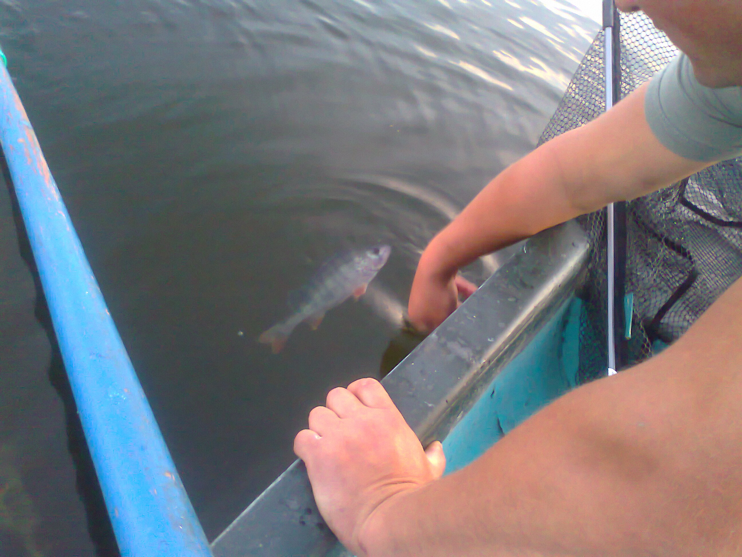 на годиннику майже 8 ранку... на воді хвиля... лодку кидає в різні боки.... вдалося на попера вимучити декілька окунців такого ж розміру як сам попер)