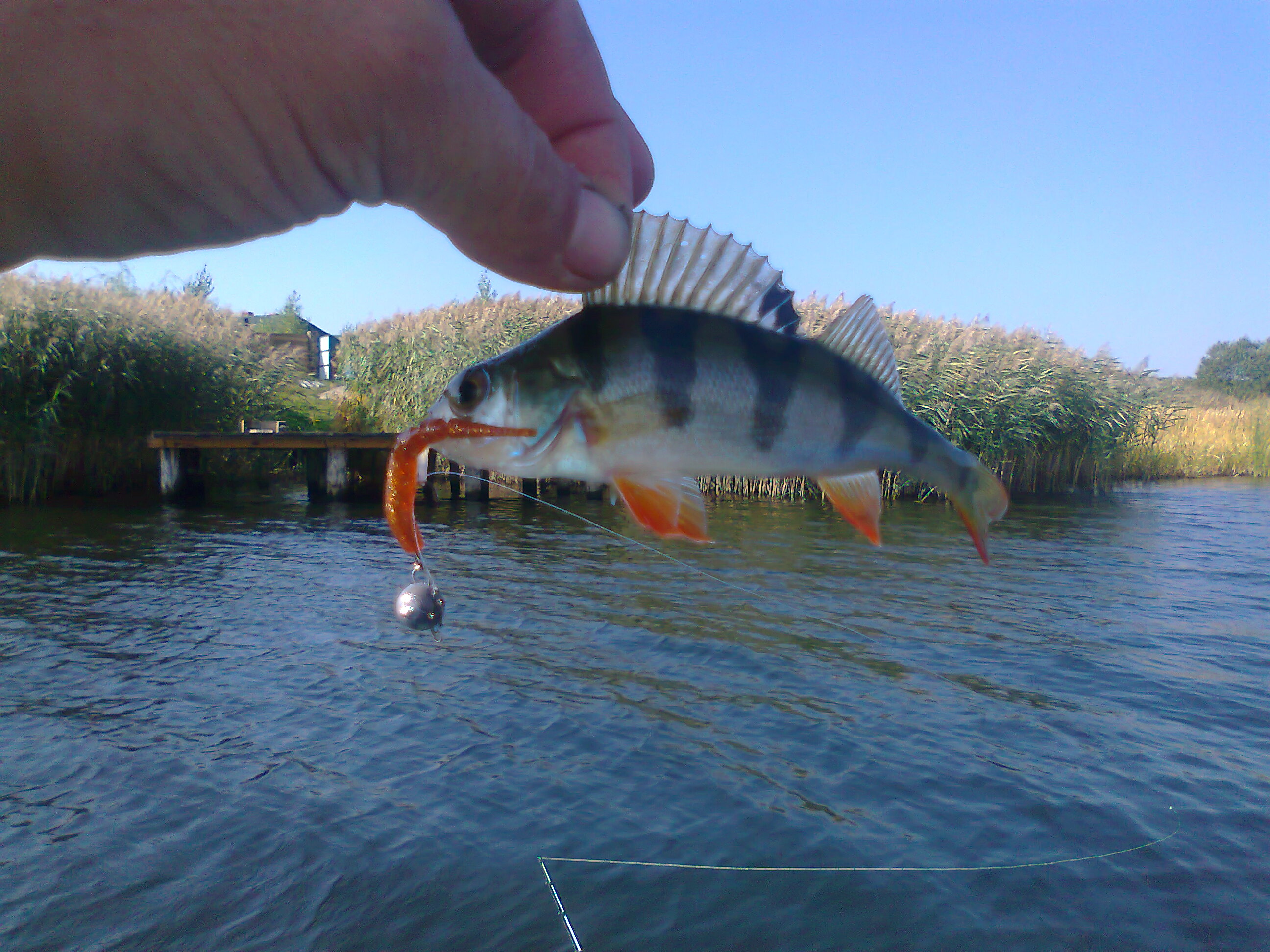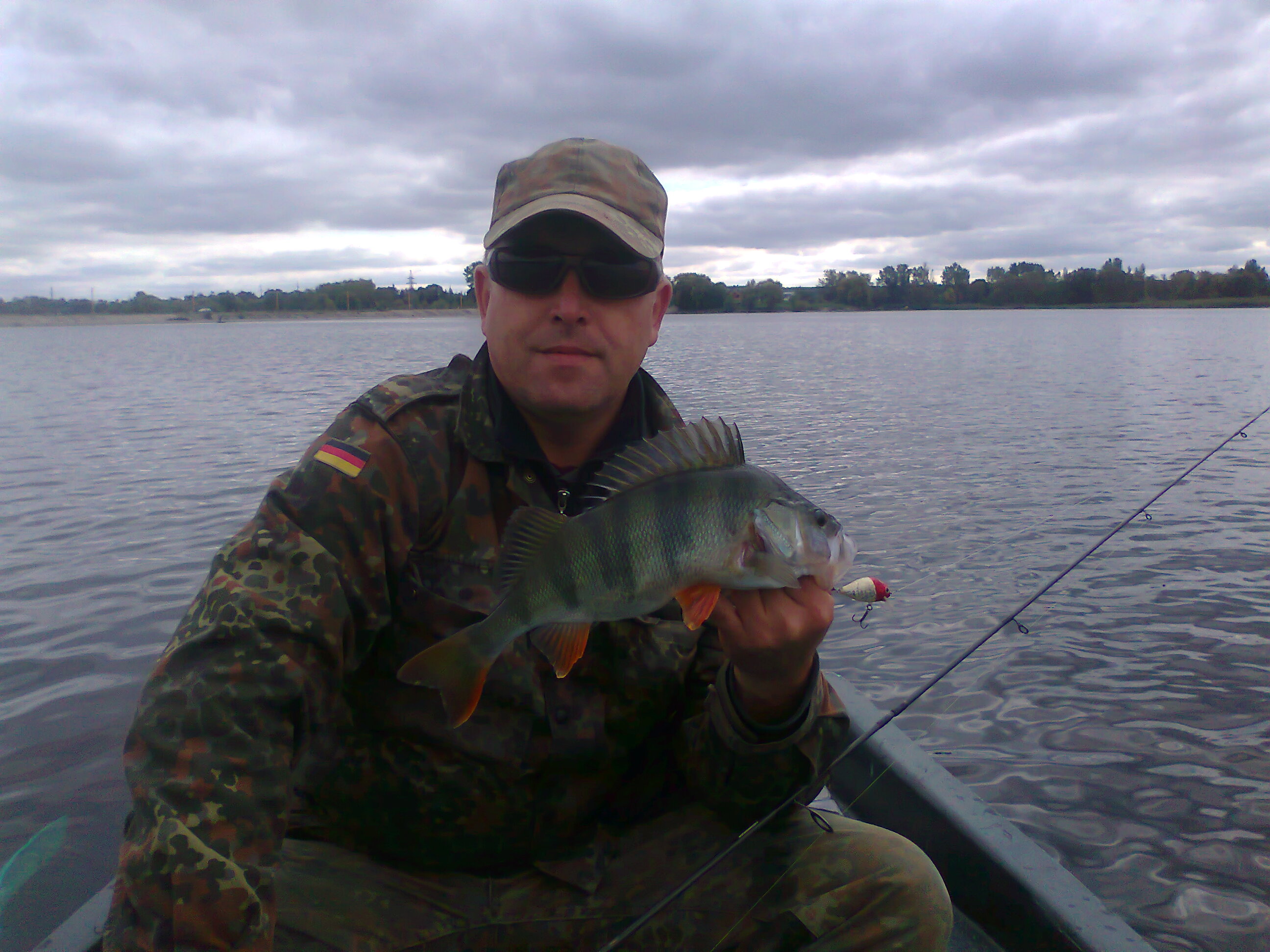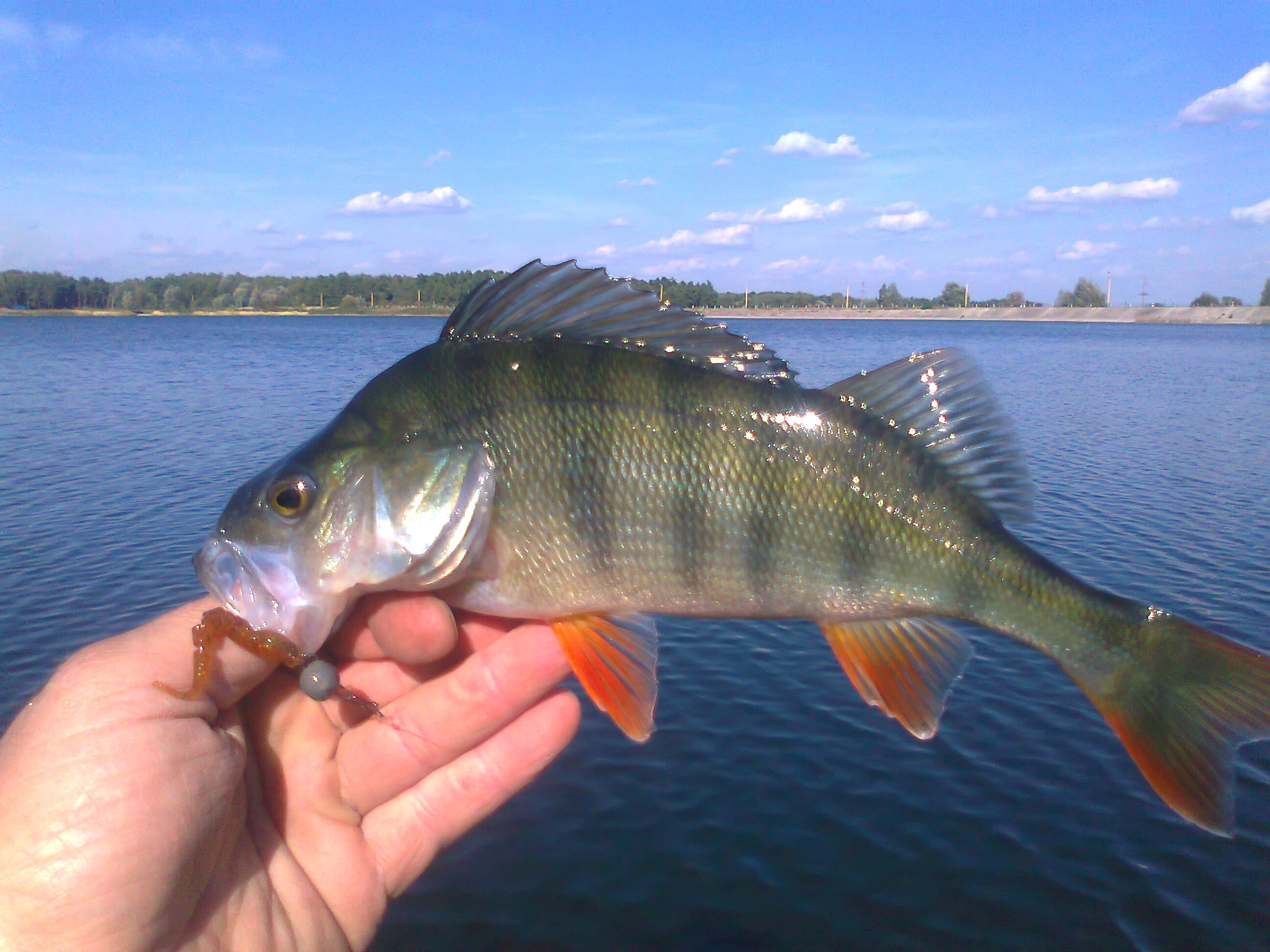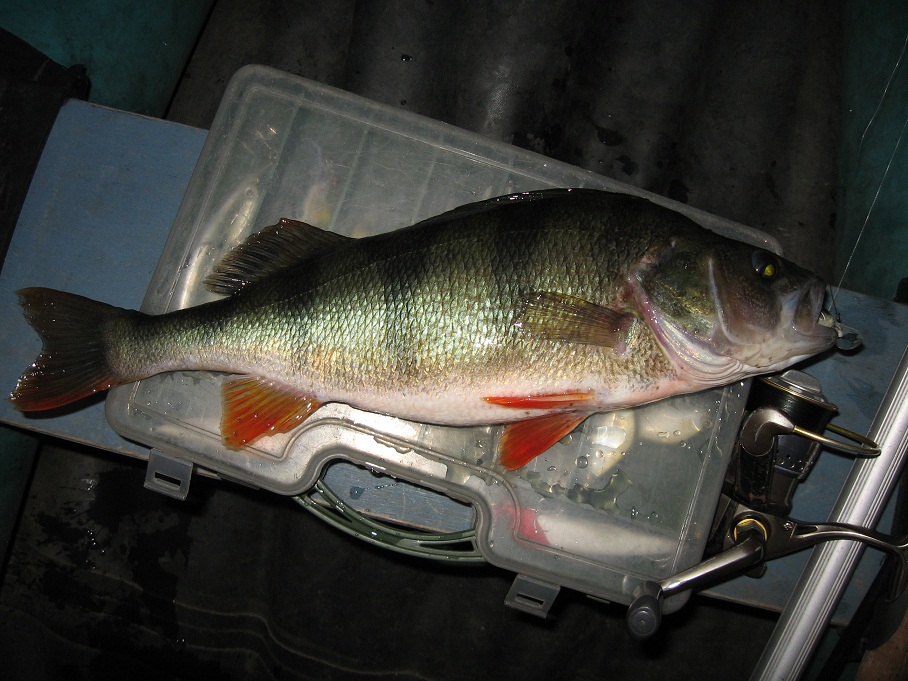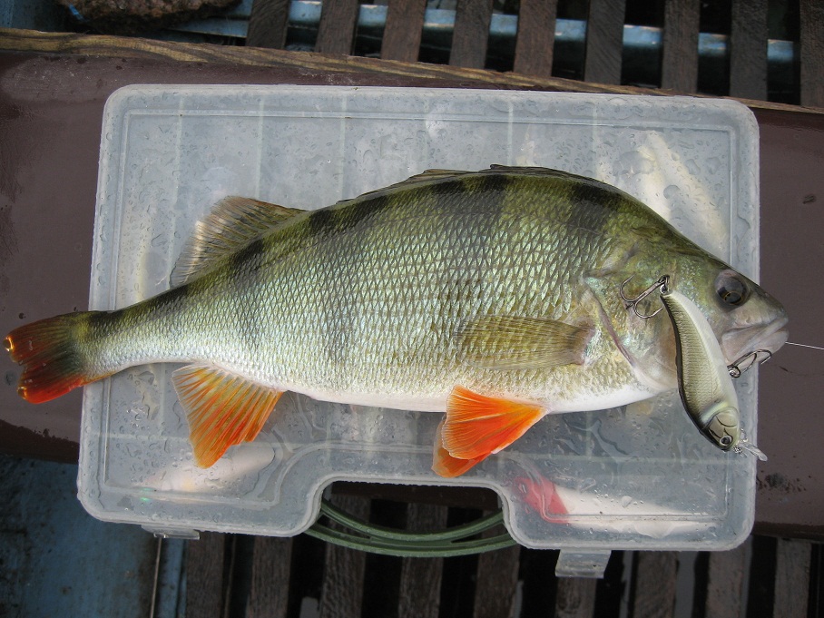 Сьогодні. Хрінниківське водосховище. Окунь. А те що виглядає в нього з рота - язичок 7-ми сантиметрової Ескарди. Ковтнув в заглот.