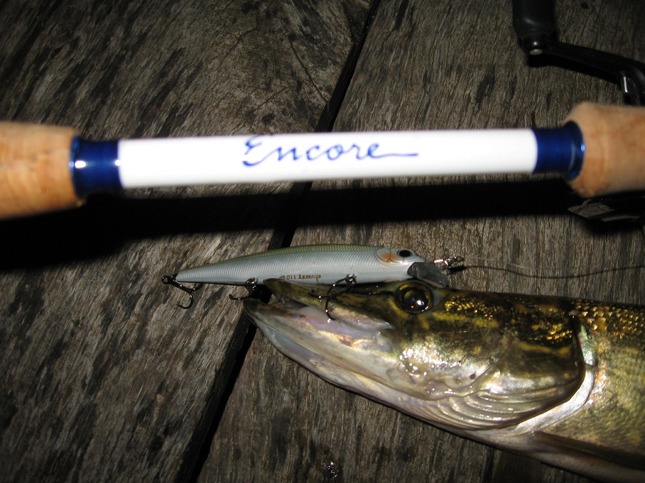 Розпочав рибалку з тестування нового спіннінга - Encore Flayer FLS-692MH з тестом 7 - 32 гр. Купував його спеціально для твічінгу крупних воблерів - міннов. Спочатку поставив 90-й Рідж - Флаєр справився без проблем, анімація воблера як має бути. . Далі Rosso Corsa Gyazatz - ще легше, його і для Евід(а) МЛ-ки кроєвського можна залишити, справиться. Укрупняюсь - Ван Тен від Мегабаса - Флаєр задав йому таку анімацію, якої я раніше за Вантеном не помічав. Воблер, хоча я на нього ловив достатньо успішно під Енкорм прям ожив. Флаєр мені все більше подобається. Ван Тен + (дайвер) - проводка без проблем. Далі ставлю 110 -й Орбіт. Заброс .... Ух ти ж мій хороший ( я про Флаєр ). Спінн -коротиш, кіл ще той - а кидає за горизонт. Декілька проводок і перша покльовка. Спін (кінчик) чітко відпрацював перші ривки невеликої щучки і без напряга доставив її до човна. Ще декілька проводок - і знову ударчик. Півкілограмове щуреня чітко "просигналивши" про покльовку толком навіть не нагрузило спіннінг. Достаю трійник, топлю "здобич". Енкор Флаєр, хоча й не був перевірений заліковою щукою, але на протязі першої рибалки довів свою " профпригодность". Треба для нього ще Рудру прикупити. Я думаю справиться без проблем. Якщо коротко про Флаєр - дуже легкий, кидучий, дзвінкий і водночас з явним запасом міцності прут за досить помірні гроші.