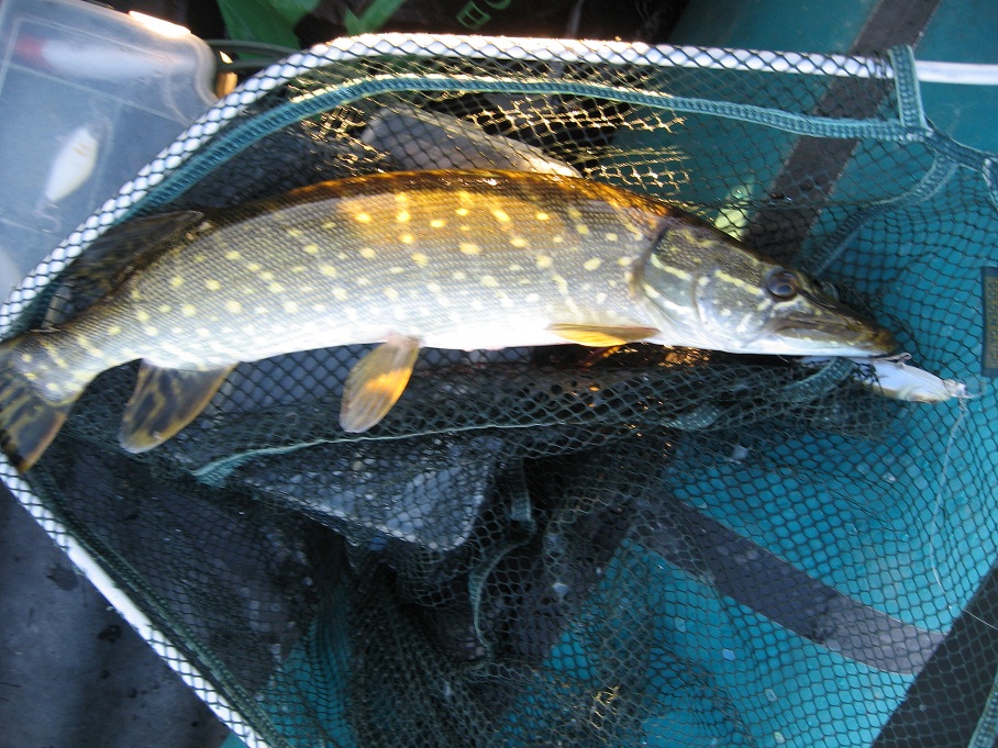 До обіду хвиля ставала все більшою і оскільки ловив в корчах, а кожний зацеп грозив 100 % - им обривом дорогих воблерів, вирішив завершити і повернутись коли вітер вляжеться. По дорозі до бази з під затопленого дерева на Ескарду ще "вговорив" таки досить непоганого окуня.