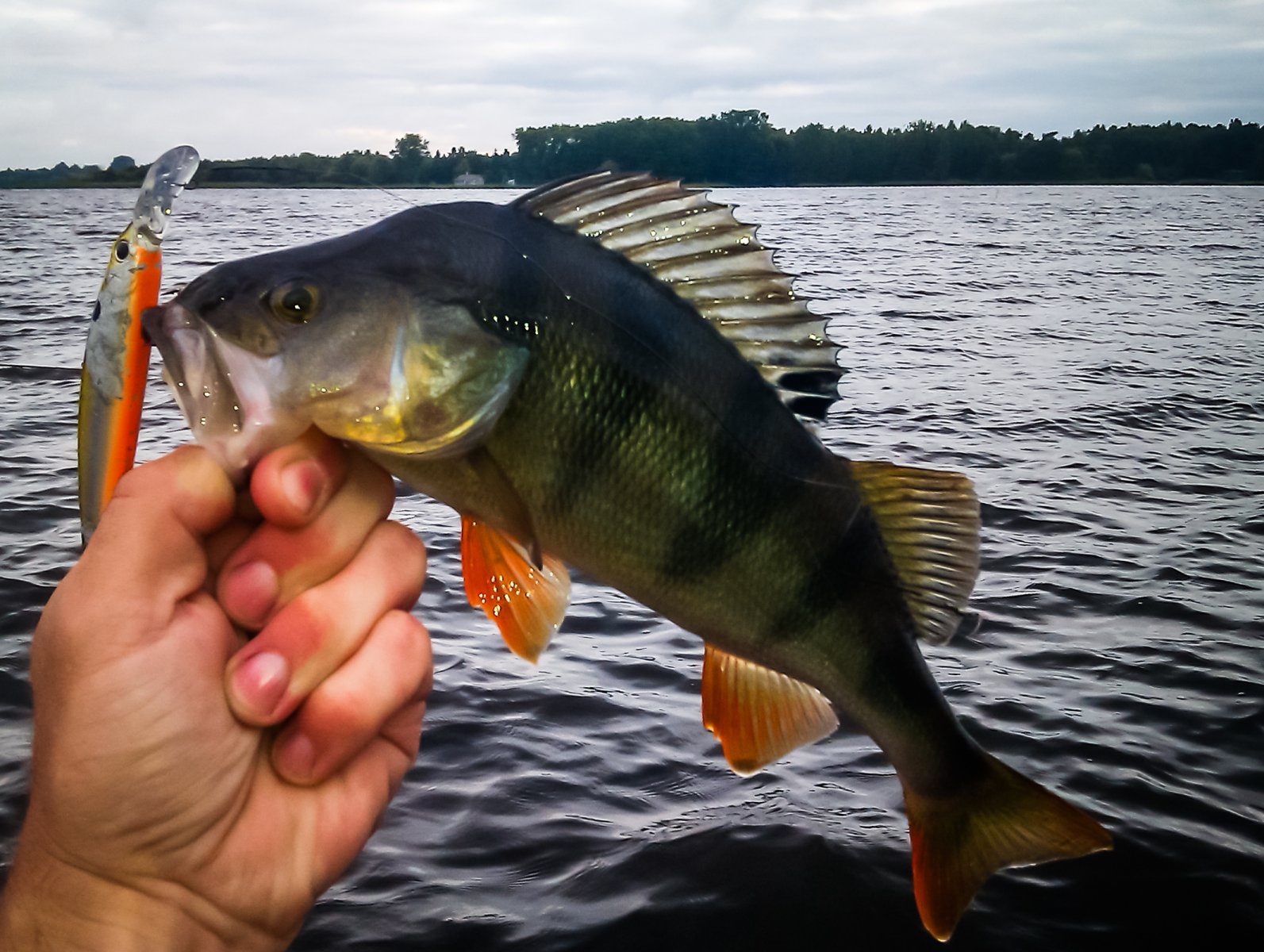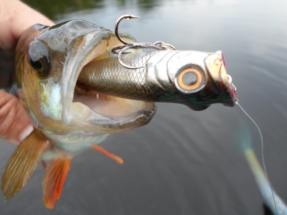 Вчора, наприклад, окунь практично не відгукувався на попери і гуму, а на воблери і оберталки реагував краще.