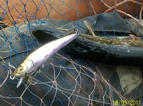 В мене відкриттям і одночасно хітом осені по щуці став Megabass Vision 110 в кольорі wakin ayu. Спочатку дві рибалки "привикав" до ньго, підбирав проводку. Не міг заставити його "рискати". І хоча проводив його одиночними ривками з паузами - все таки заробив декілька покльовок. А потім як прозріння : застосував джеркінг (агресивний твічінг) - серія з трьох - чотирьох різкіх ривків, коротка пауза, потім один ривок і пауза 3-5 секунд. Всі покльовки на довгій паузі. Після цього без риби не залишався навіть на "запресованих" сіточниками водоймах.