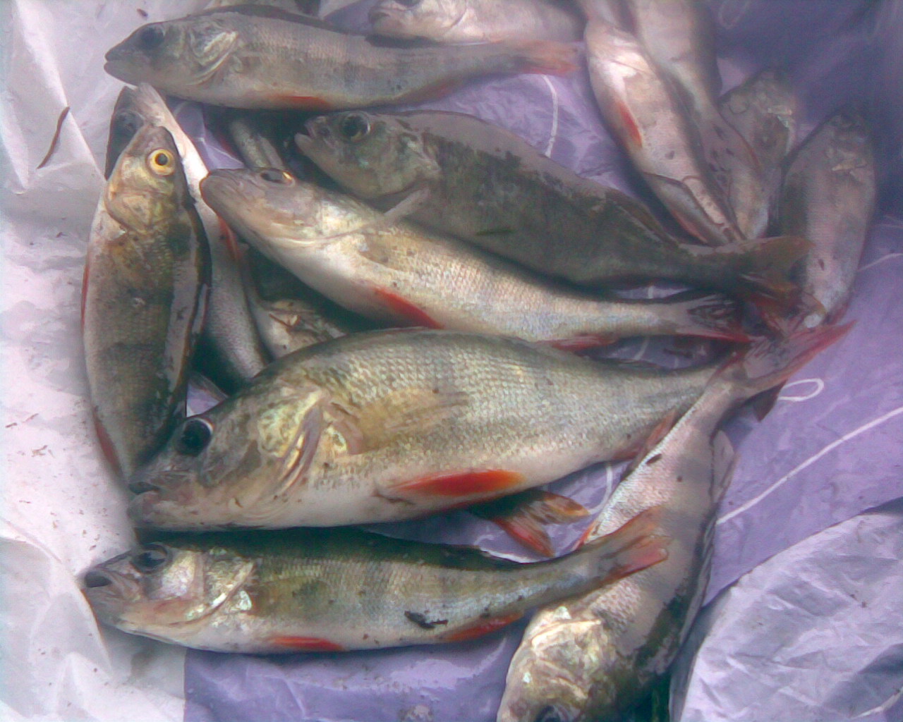 Саня словил три окуня и разловил новый комплект снастей,а я обкатал новую напоясную сумочку