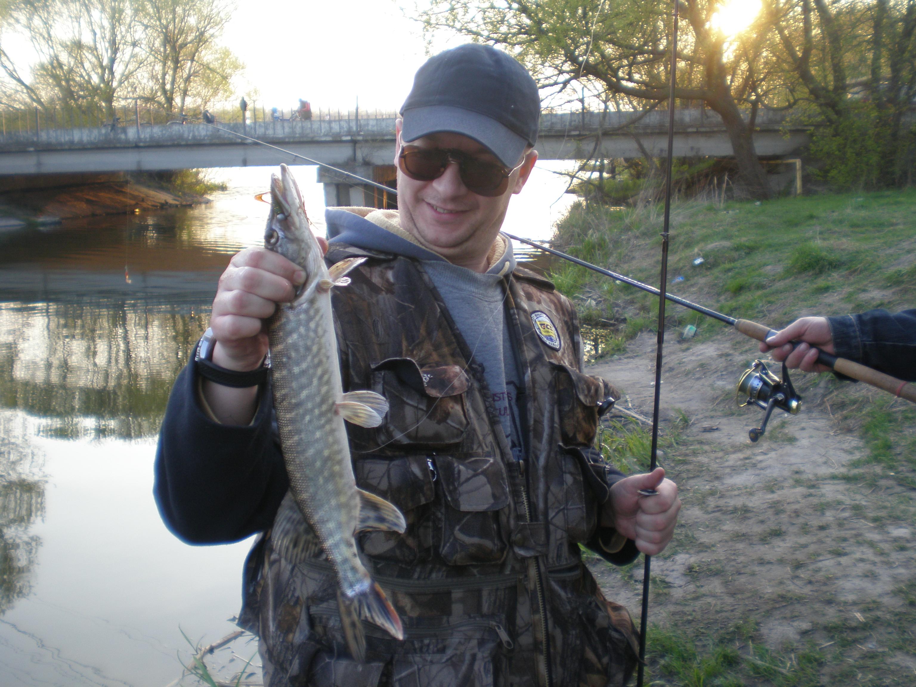 Рыбачили возле моста.У Юры были невнятные поклевки,а у меня полный штиль...На противоположном горизонте появился Коля Свирык.Я кричу:"Шо,клює?!".Сначала отрицательный ответ,потом пауза...спиннинг согнулся и слышу:"А тепер клює!!! "...Умеет он это делать,тут ужь нечего не скажешь))).Немного борьбы и щука откусывает флюрик 0,21:злой:...