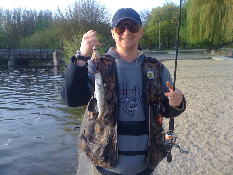 Зібралися спонтанно - Стартер вирішив помочити свій новий спін, ну а я, як той реп*ях вчепився йому на хвіст і ось що с цього вийшло: где-то в районе 18 часов мы выскочили на пляж помочить приманки( пока Кум подтянется). Пока Стартер замешкался говоря по телефону, мне удалось на третьей проводке выхватить судачка был после фотосессии утоплен. На пляже было несколько наших форумчан и результат у них был не ахти какой, хотя кое где наблюдался выход окуня. Делаю два заброса и снова поклёвка но это чуствую уже точно окунь(г100) . Вывожу на берег и тут команда - пора заберать Кума,поехали...